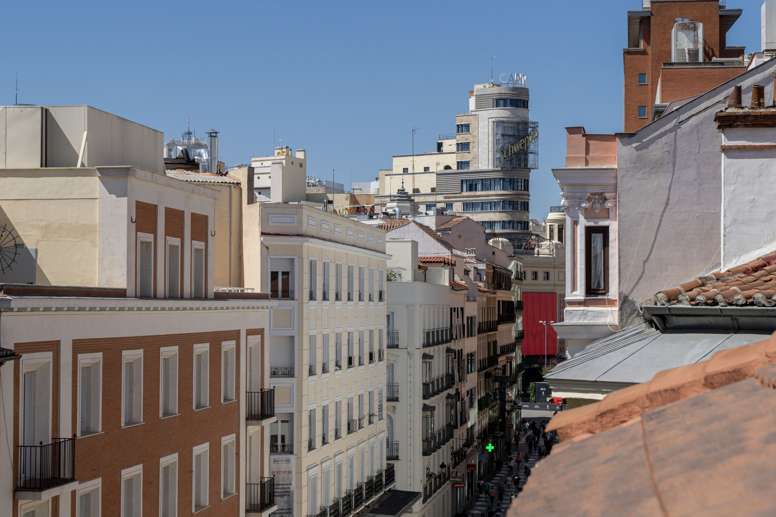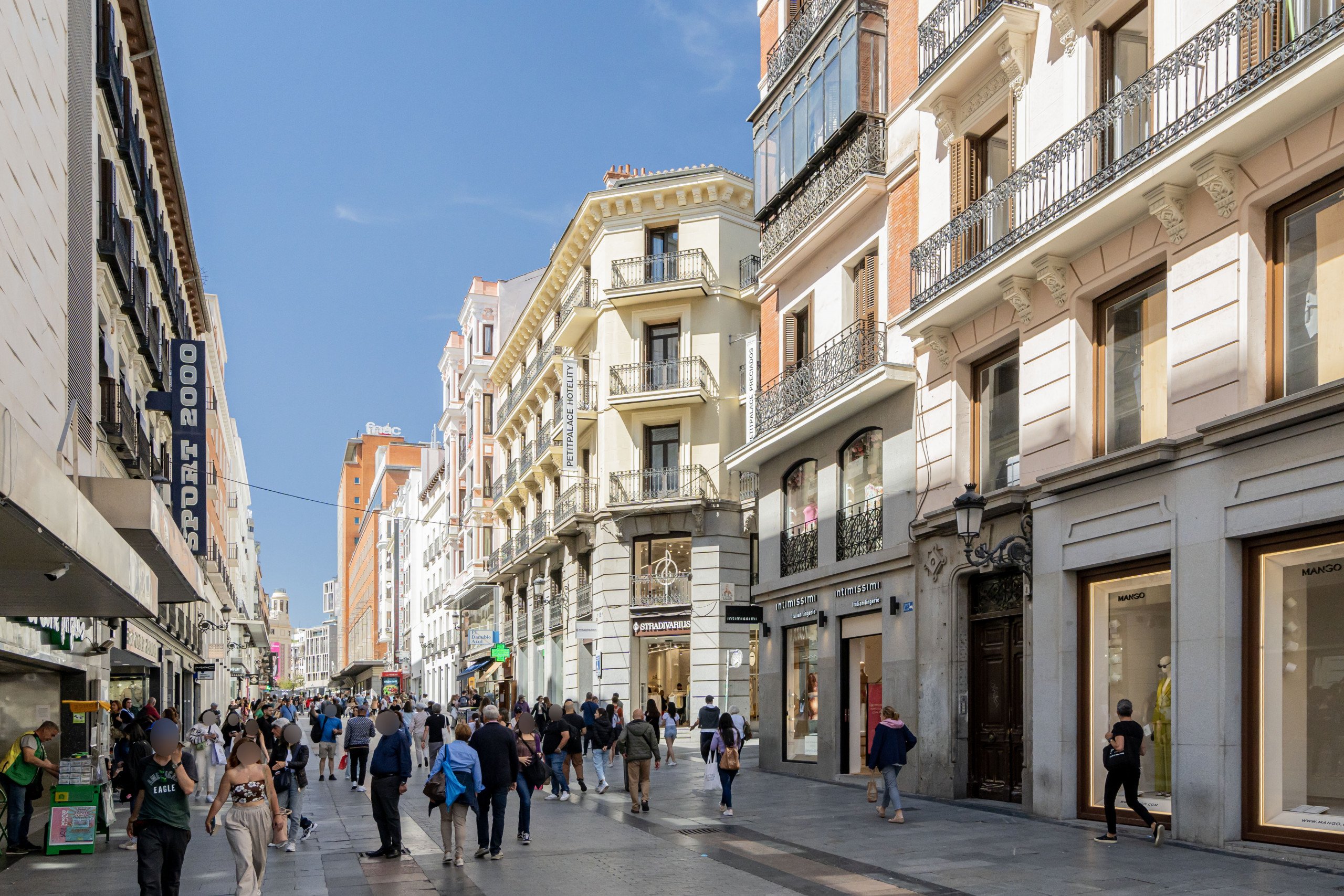 Situado en la Calle Preciados, este inmueble cuenta con dos grandes centros comerciales a escasos cien metros, cafeterías, restaurantes y tiendas de las más importantes firmas a lo largo de los 318 metros de calle