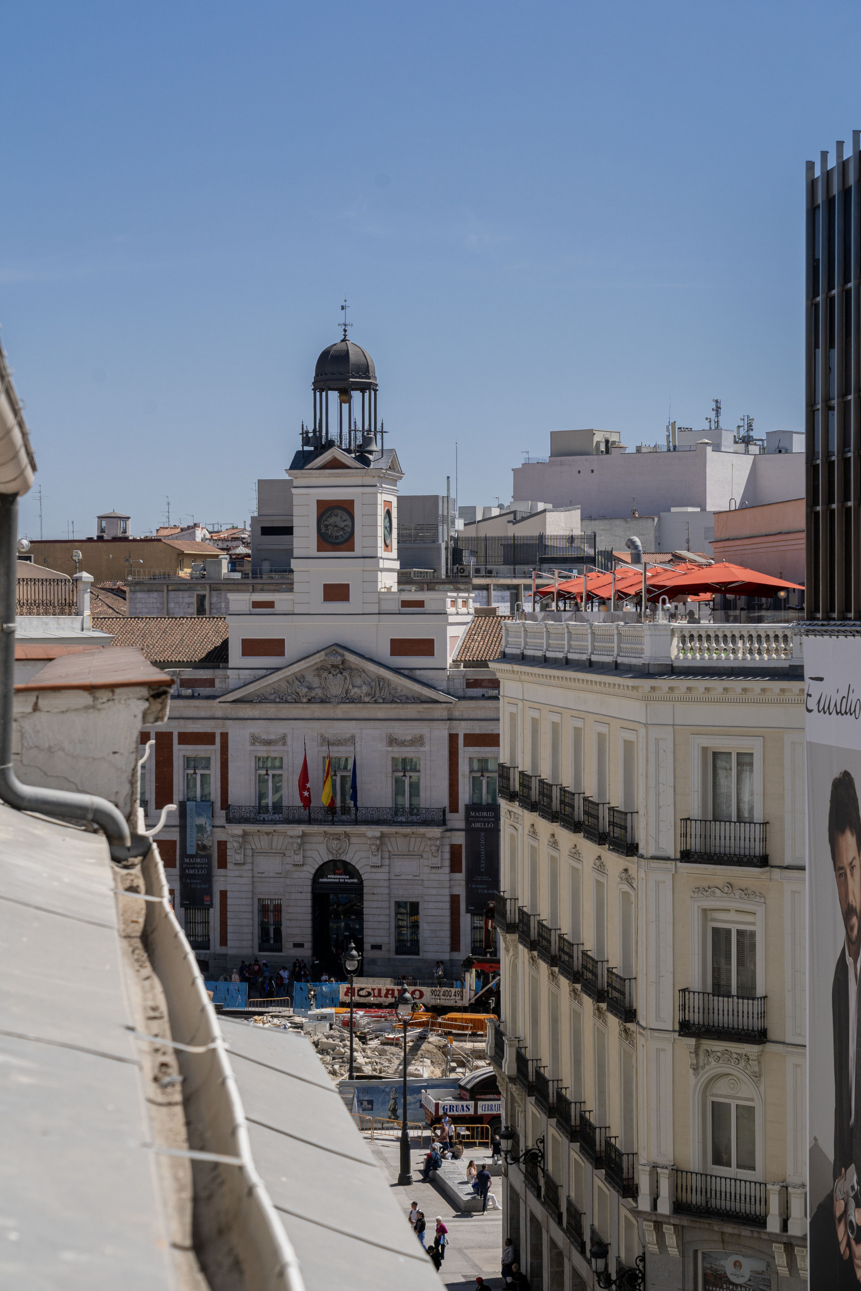 El inmueble está situado a escasos metros de la puerta más famosa de la capital española, en cuanto sales del edificio, se divisa el mítico reloj de la Puerta del Sol