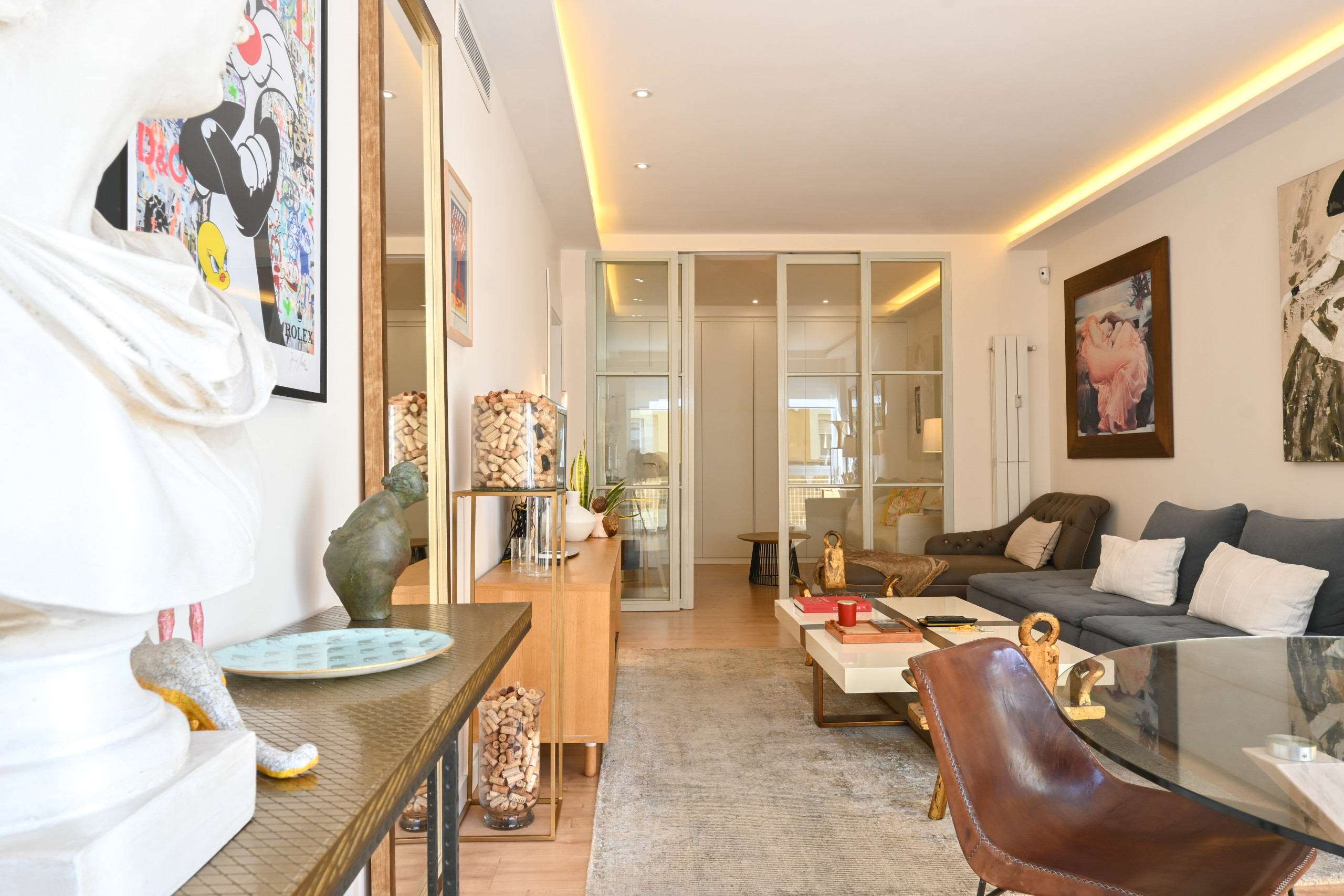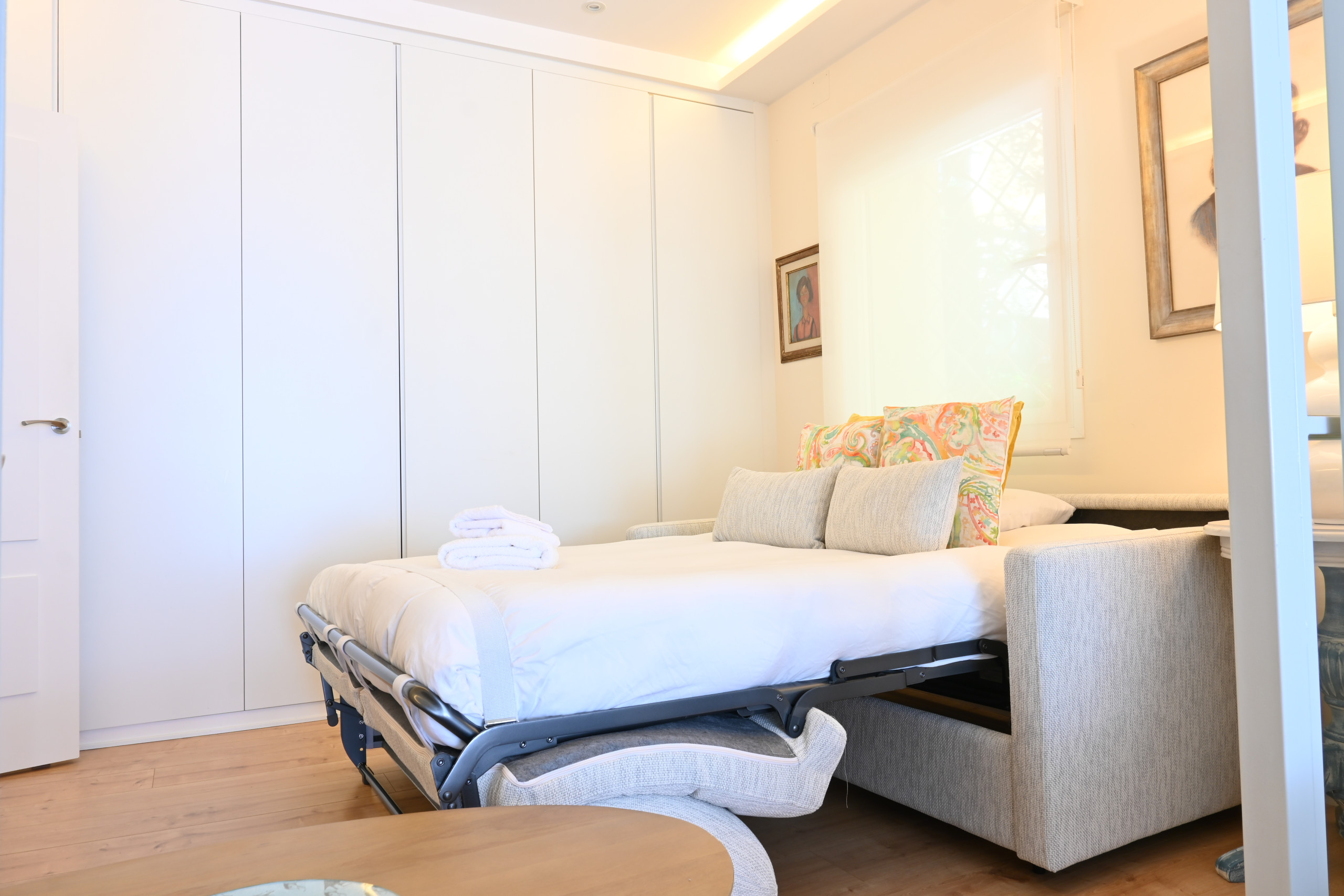 Olvídate de las habitaciones oscuras y descubre este apartamento de un dormitorio junto al Estadio Santiago Bernabéu, inundado de luz natural y exquisitos detalles decorativos. En una urbanización cerrada, este refugio de 108 m² te invita a relajarte y disfrutar de la vibrante vida madrileña con un toque de elegancia y muy cercano al Madrid financiero y de negocios.