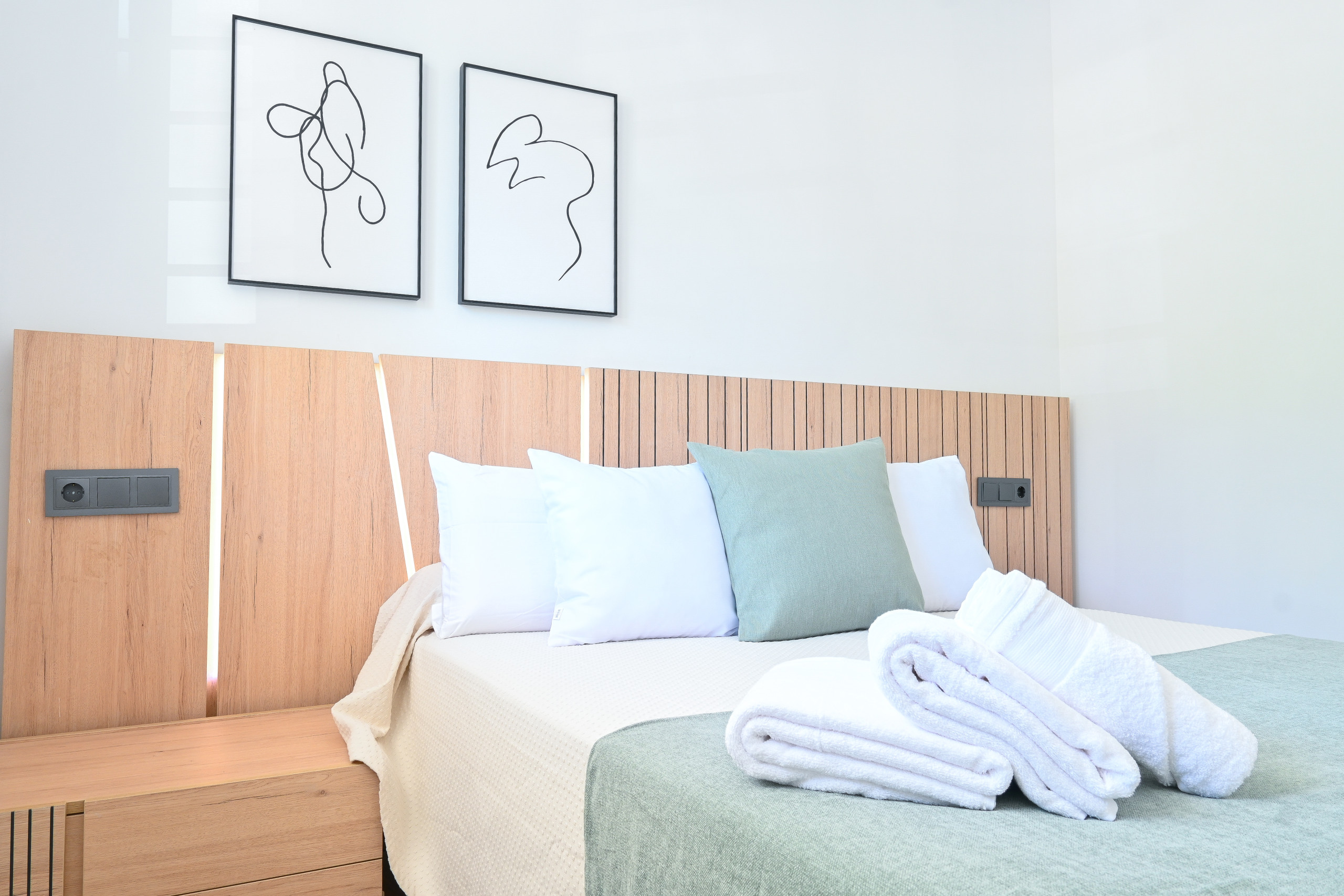 El salón es un espacio luminoso y versátil, diseñado para el máximo confort. Equipado con un sofá cama, es perfecto para acomodar huéspedes adicionales. Además, la sala cuenta con una TV de pantalla plana, creando un espacio ideal para relajarse y disfrutar de una noche de películas o simplemente descansar después de un día ajetreado. Los grandes ventanales del salón permiten la entrada de abundante luz natural, creando un ambiente acogedor y agradable.