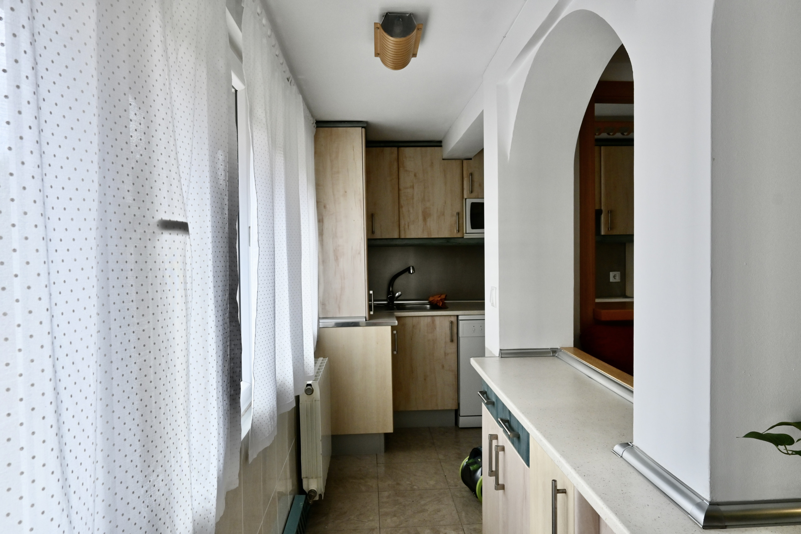 El cuarto de baño, equipado con un plato de ducha, proporciona comodidad y funcionalidad para las rutinas diarias de higiene. La presencia de luz natural en toda la vivienda crea un ambiente cálido y acogedor.