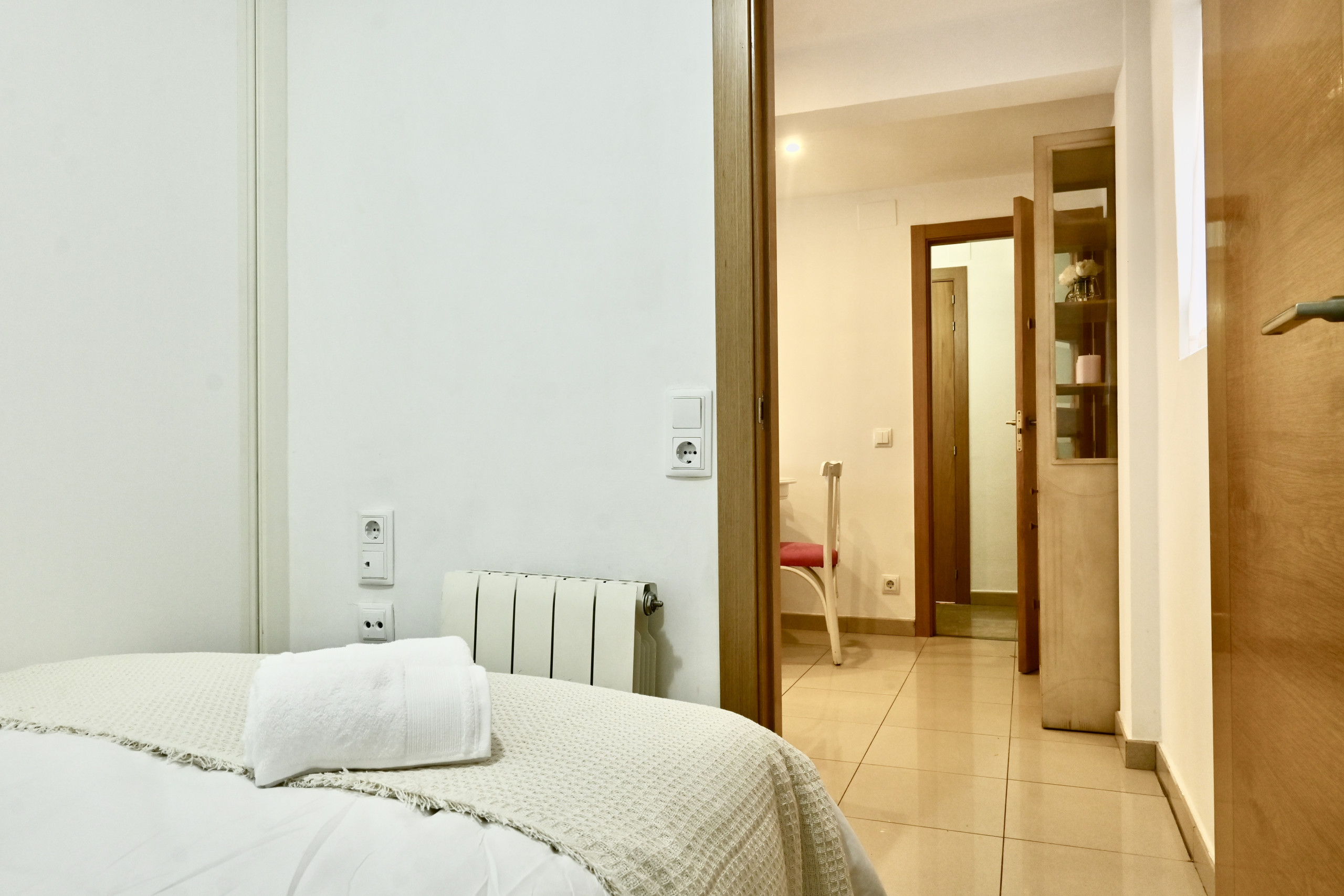 La distribución de la vivienda incluye dos dormitorios. El primero alberga una cómoda cama doble, creando un espacio acogedor para descansar. El segundo dormitorio cuenta con una cama individual y es ideal para un huésped adicional o para convertirse en un espacio de trabajo privado.