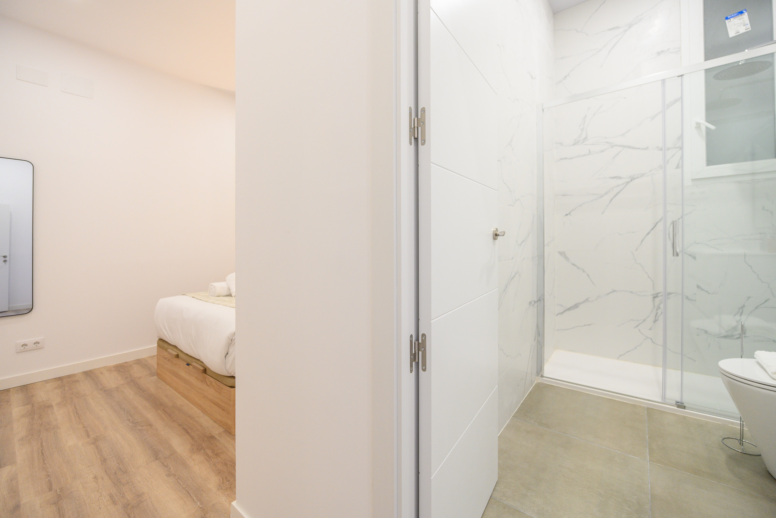 Cuenta con tres amplias habitaciones, todas equipadas con camas dobles, armarios empotrados y baño en suite con plato de ducha, diseñados para garantizar privacidad y confort.