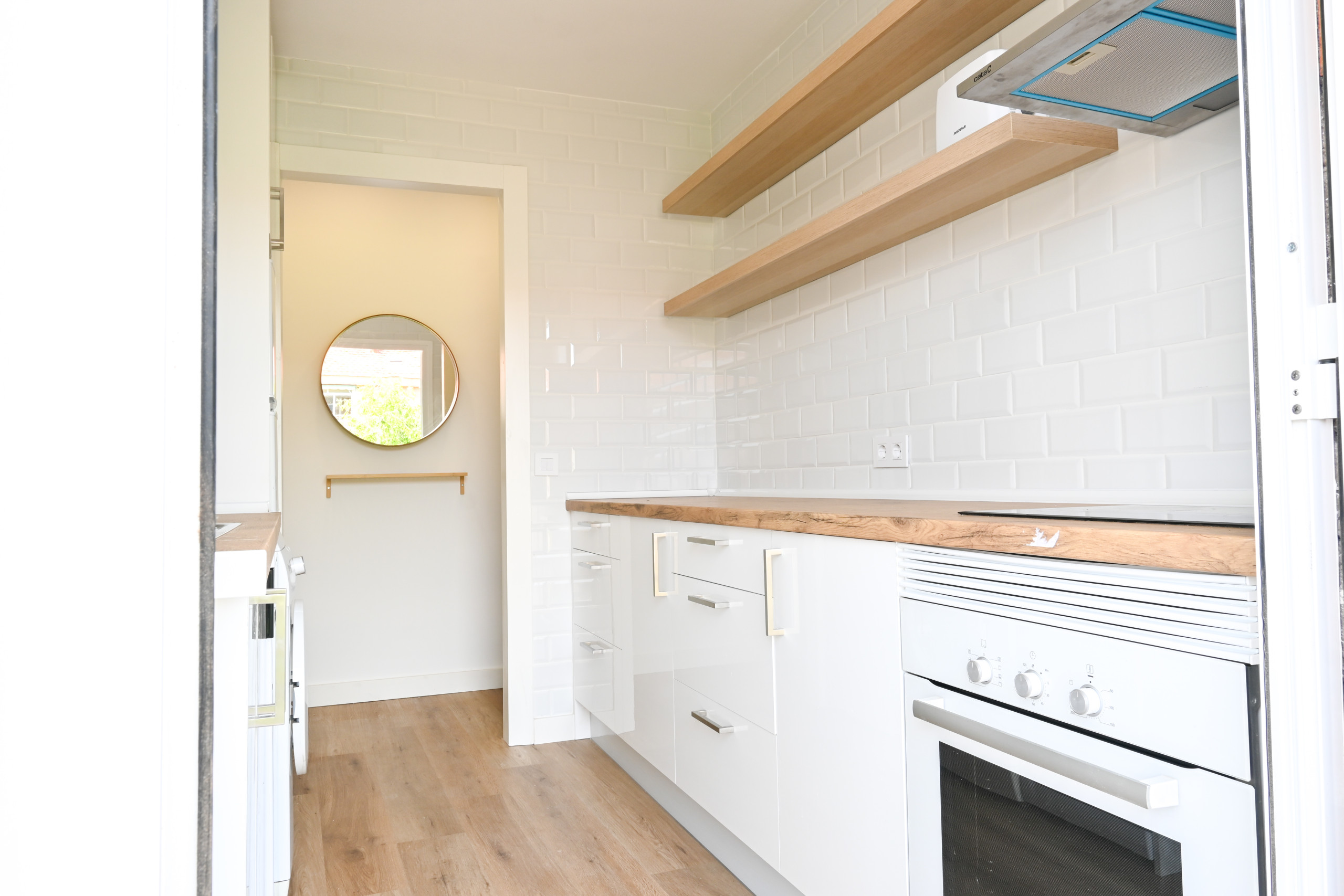 La cocina es independiente y está equipada con electrodomésticos y abundante espacio de almacenamiento. Esto permite preparar comidas con facilidad y comodidad, sin sacrificar el estilo.
