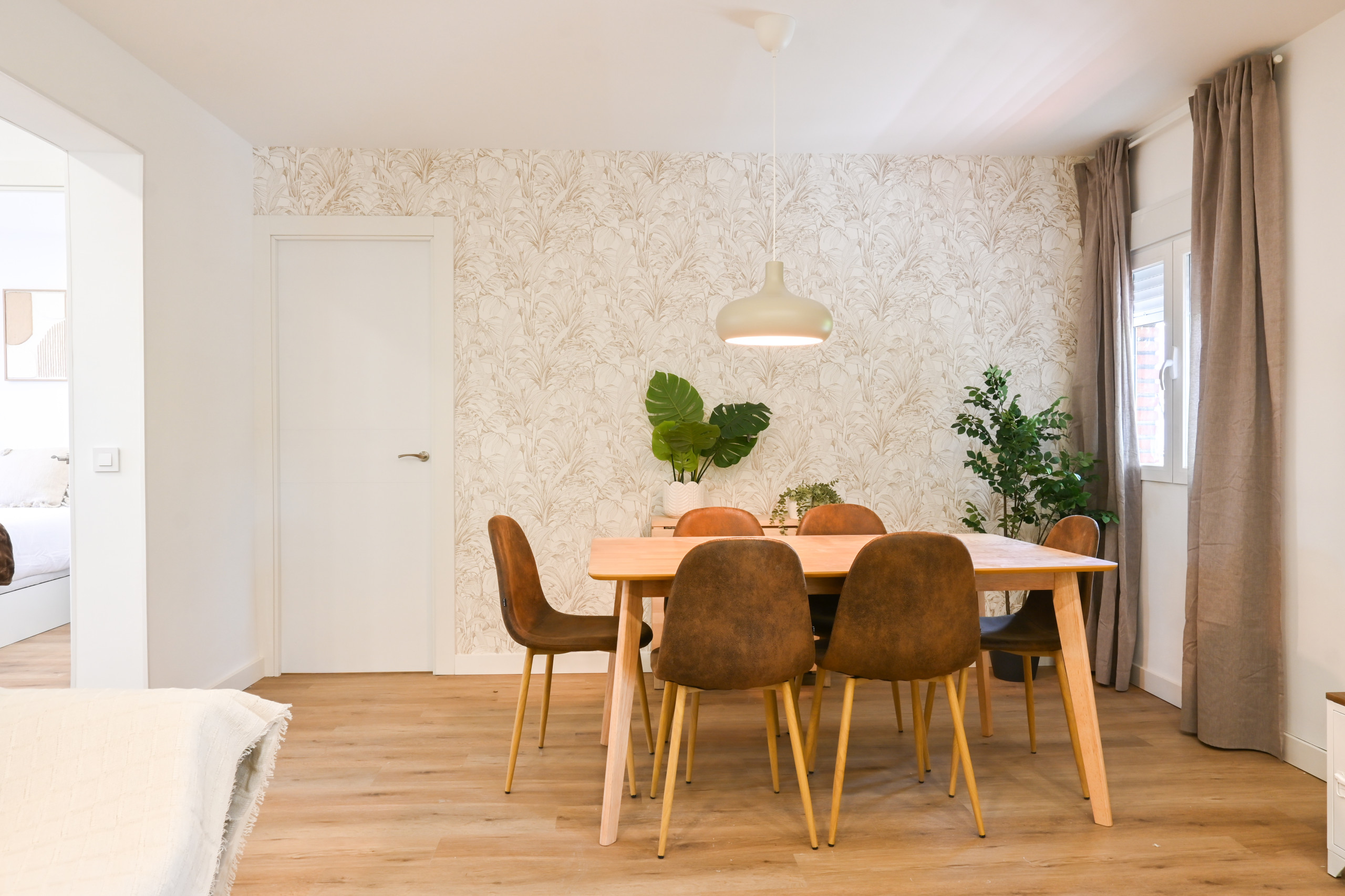 Al ingresar, te recibe el salón-comedor, un ambiente abierto y acogedor. Aquí encontrarás un cómodo sofá cama doble, ideal para huéspedes adicionales o para disfrutar de una película en familia. El espacio se complementa con una mesa de comedor con capacidad para seis personas, perfecta para cenas o reuniones con amigos.