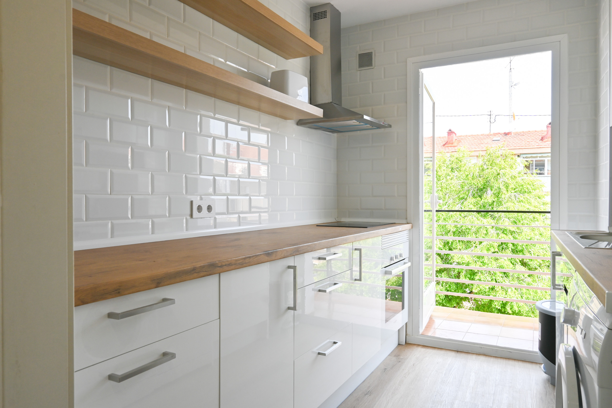 Uno de los aspectos más destacados de la vivienda son sus dos terrazas. Una de ellas se encuentra junto al salón-comedor, ofreciendo un espacio al aire libre para relajarse y disfrutar de las vistas urbanas. La segunda terraza, conectada a la cocina