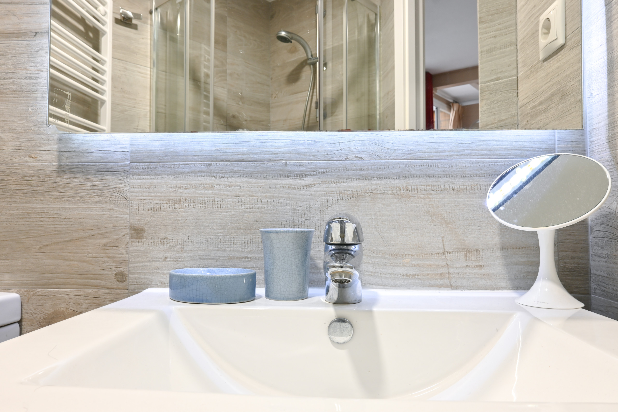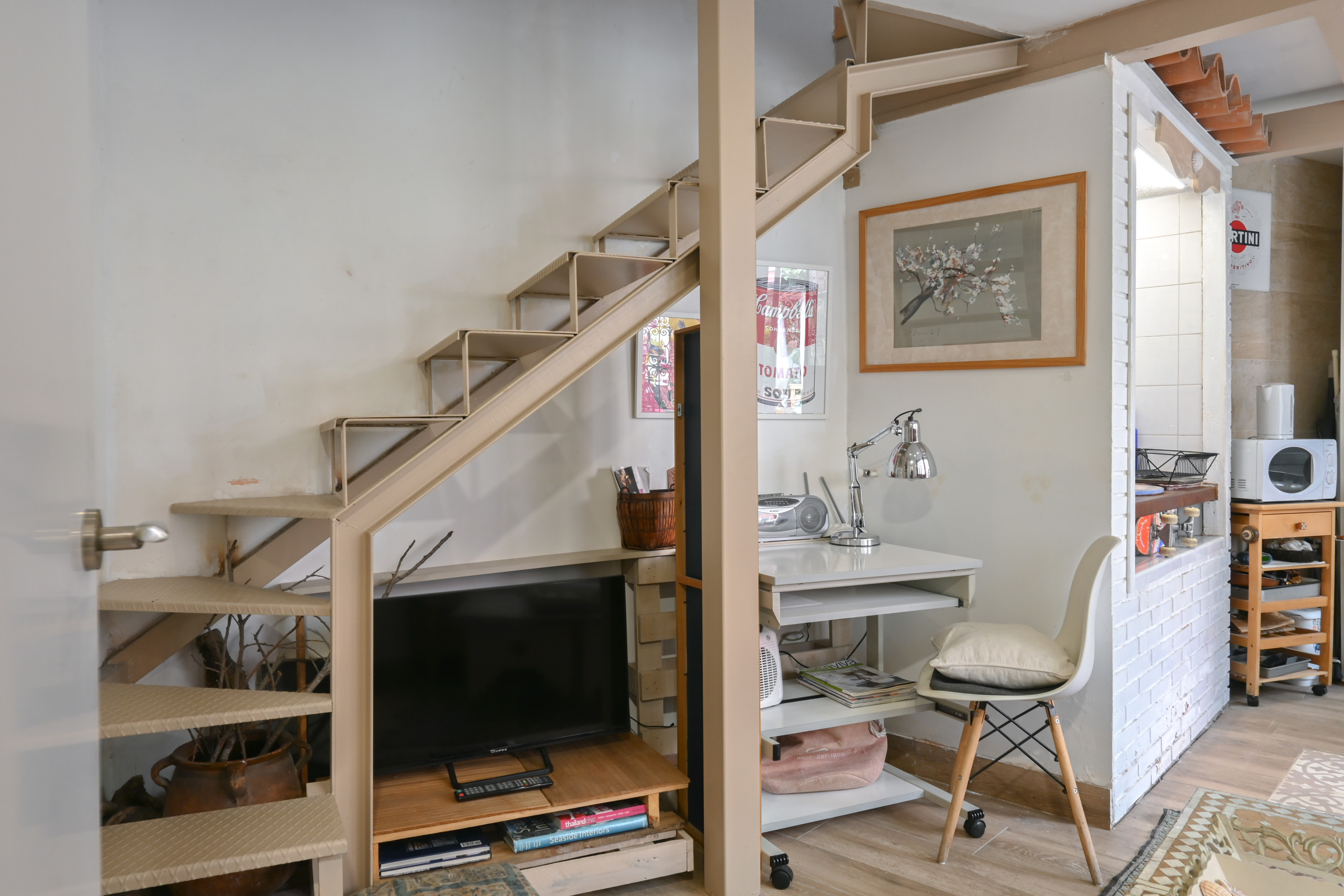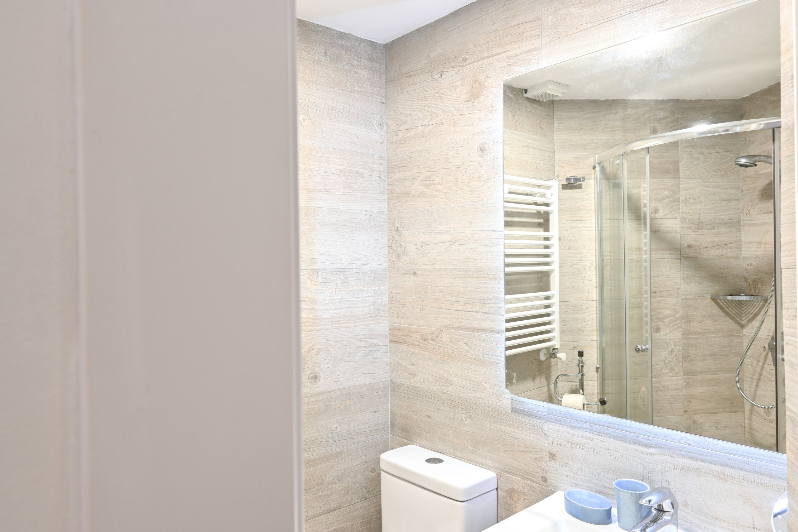 El estudio cuenta con un salón acogedor equipado con televisión y acceso a Internet de alta velocidad, perfecto para relajarse y disfrutar de entretenimiento en casa. El dormitorio y en particular el estudio es cómodo y se ha decorado con un estilo ecléctico que combina elementos modernos con detalles tradicionales, creando un ambiente cálido y acogedor. El baño tiene un práctico plato de ducha, ideal para el uso diario.