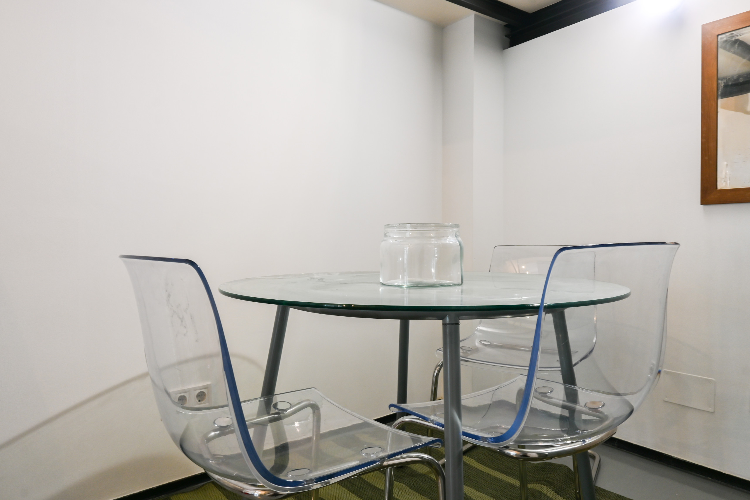 En el área del comedor, hay una mesa con capacidad para cuatro personas, acompañada de sillas de diseño sencillo pero elegante. Este espacio fluye hacia la cocina integrada y el salón, proporcionando un ambiente abierto y sociable. La cocina está equipada con electrodomésticos modernos y gabinetes de estilo industrial,