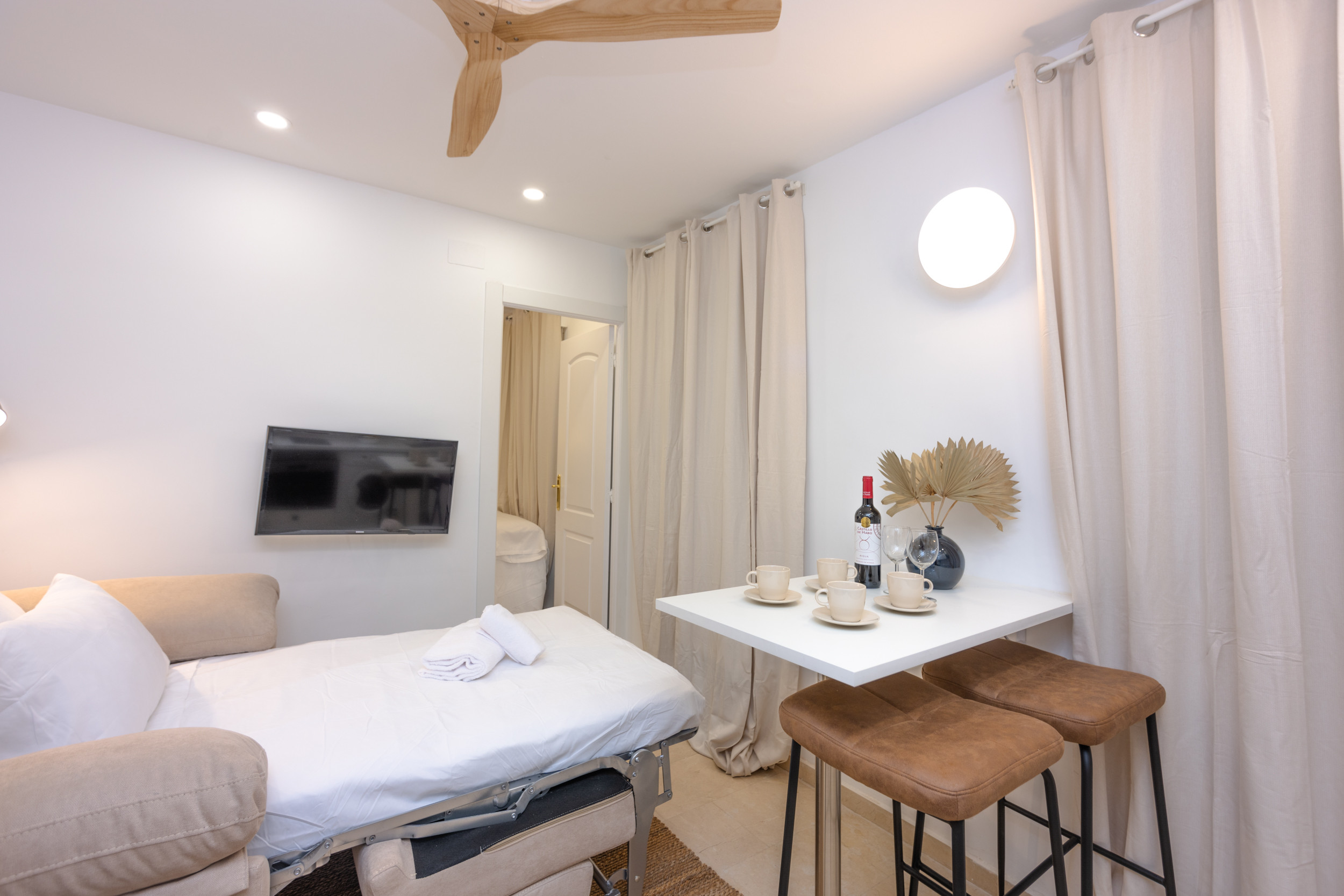 En el salón encontrarás un cómodo sofá cama individual, perfecto para acomodar a un tercer huésped. Además, el salón cuenta con una televisión inteligente y acceso a wifi de alta velocidad para que puedas disfrutar de tus programas favoritos y mantenerte conectado con tus amigos y familiares.