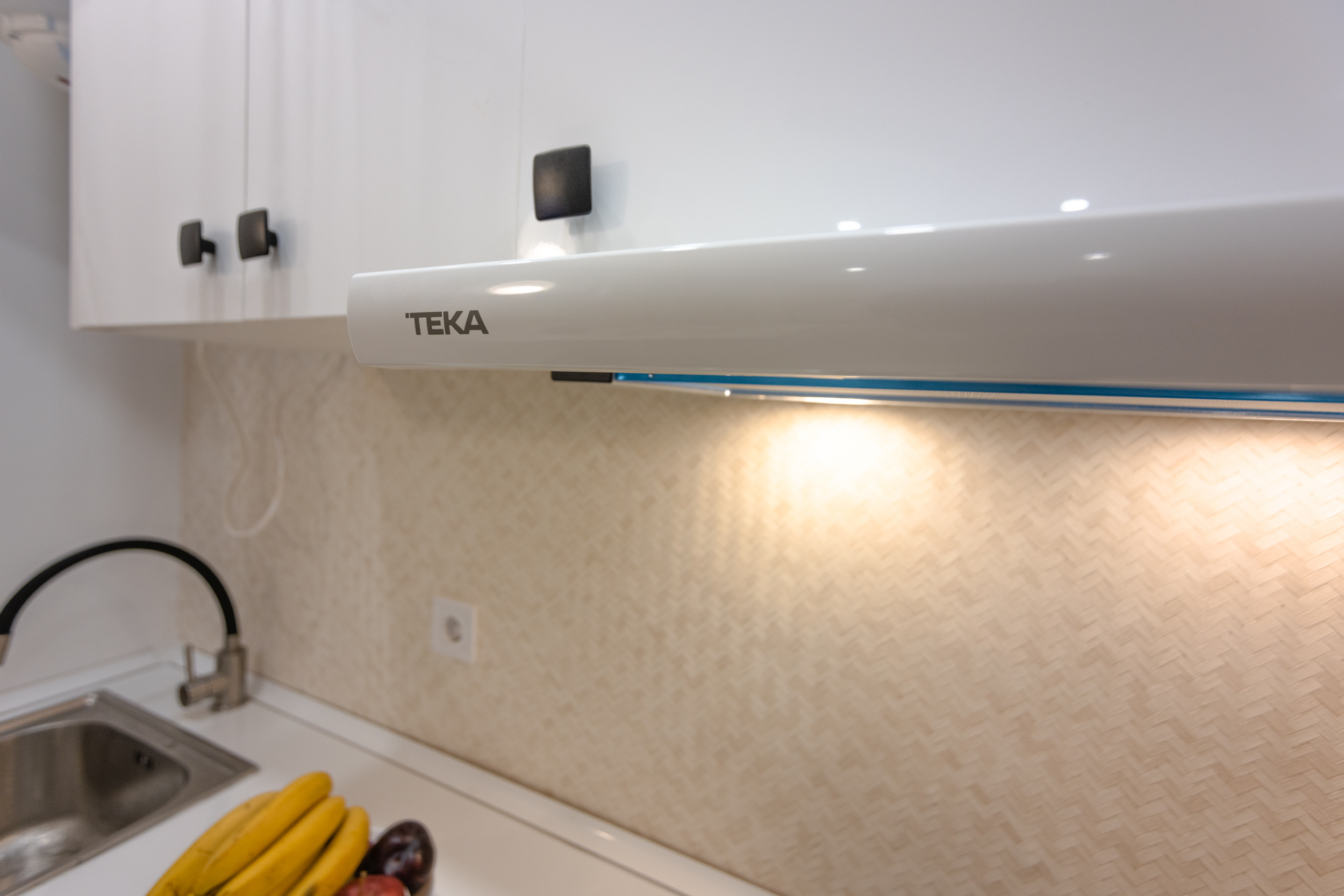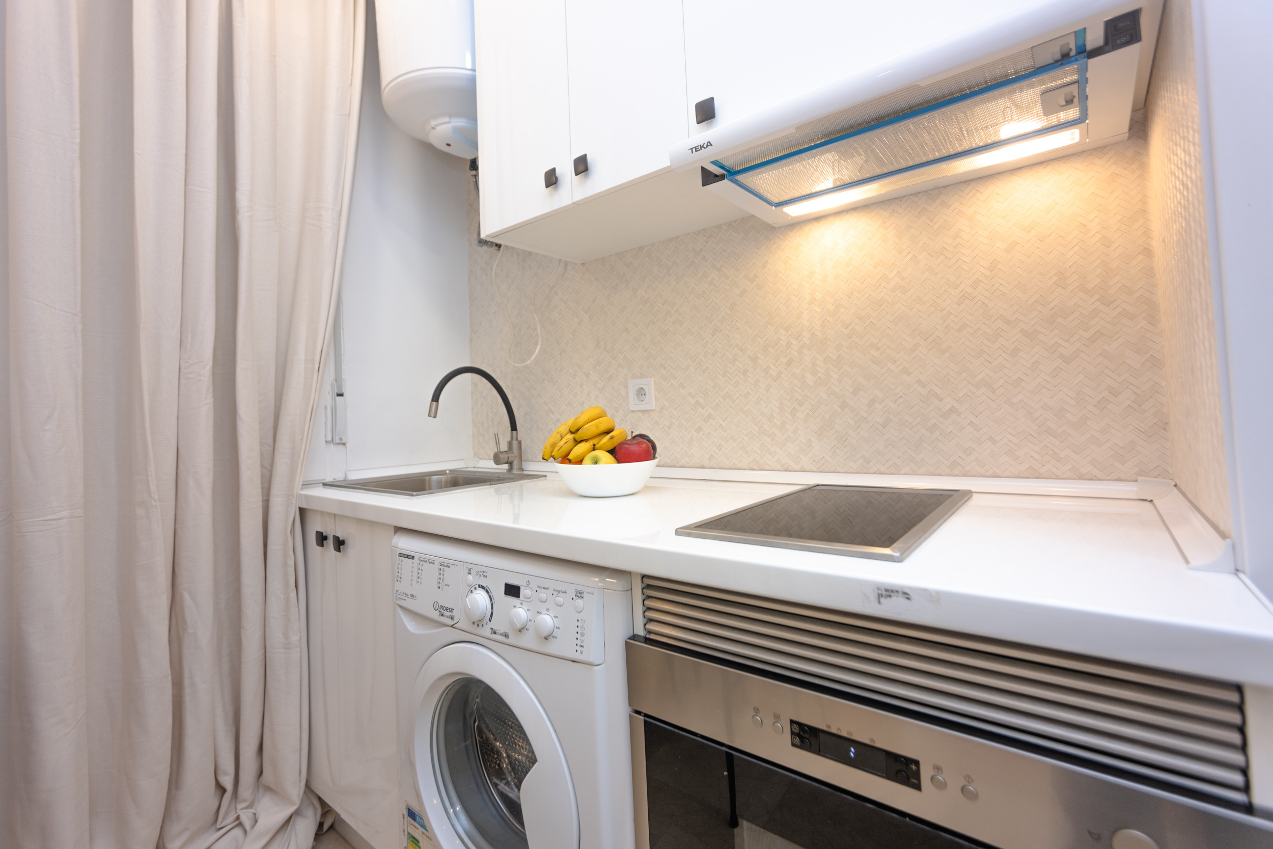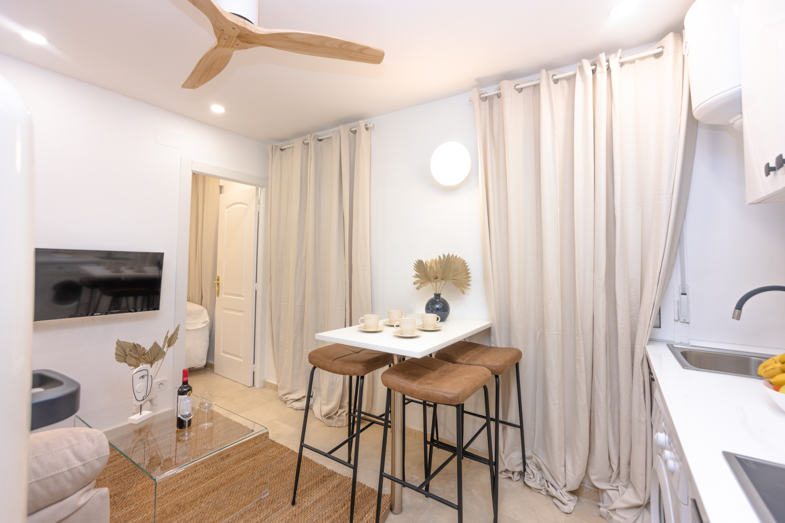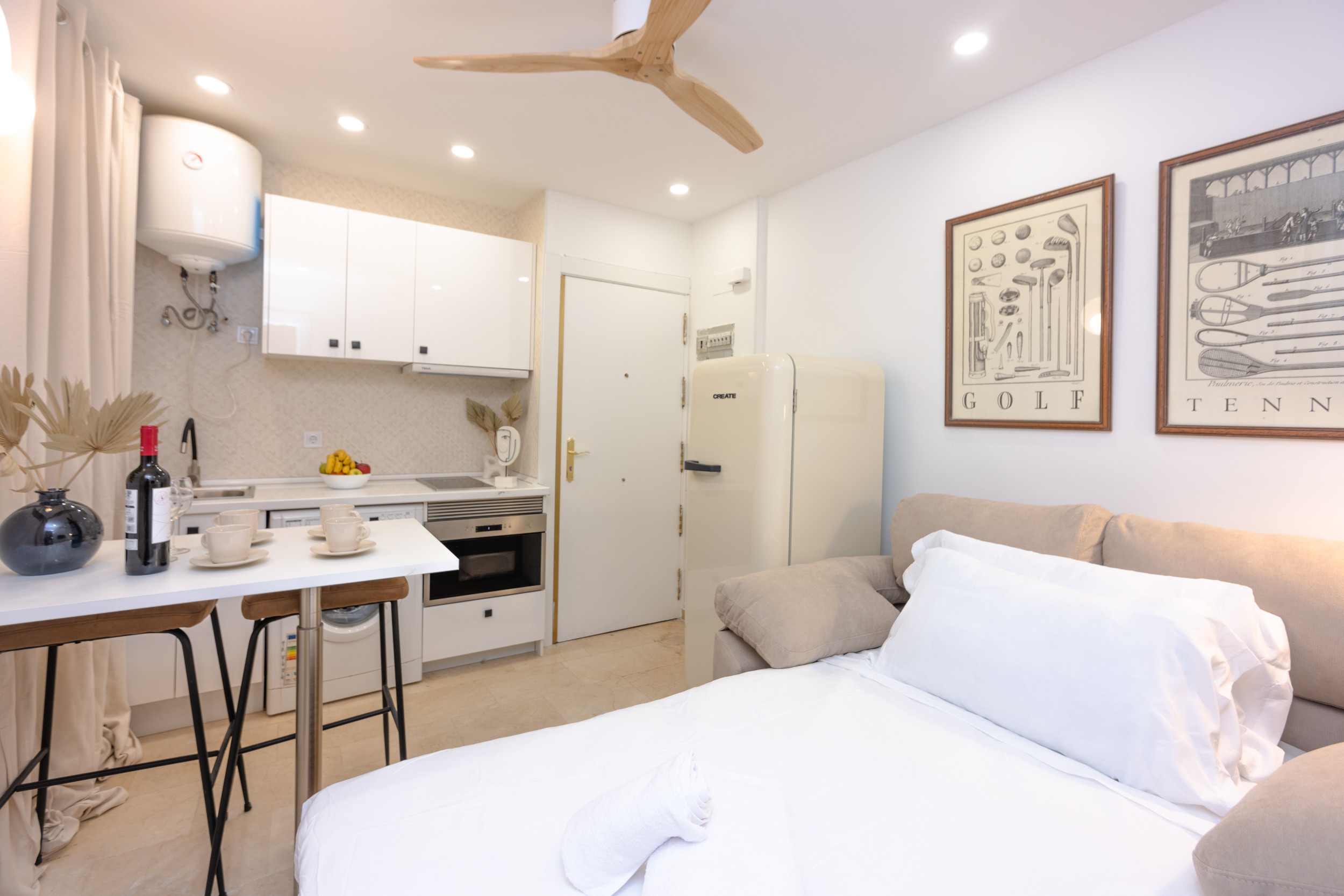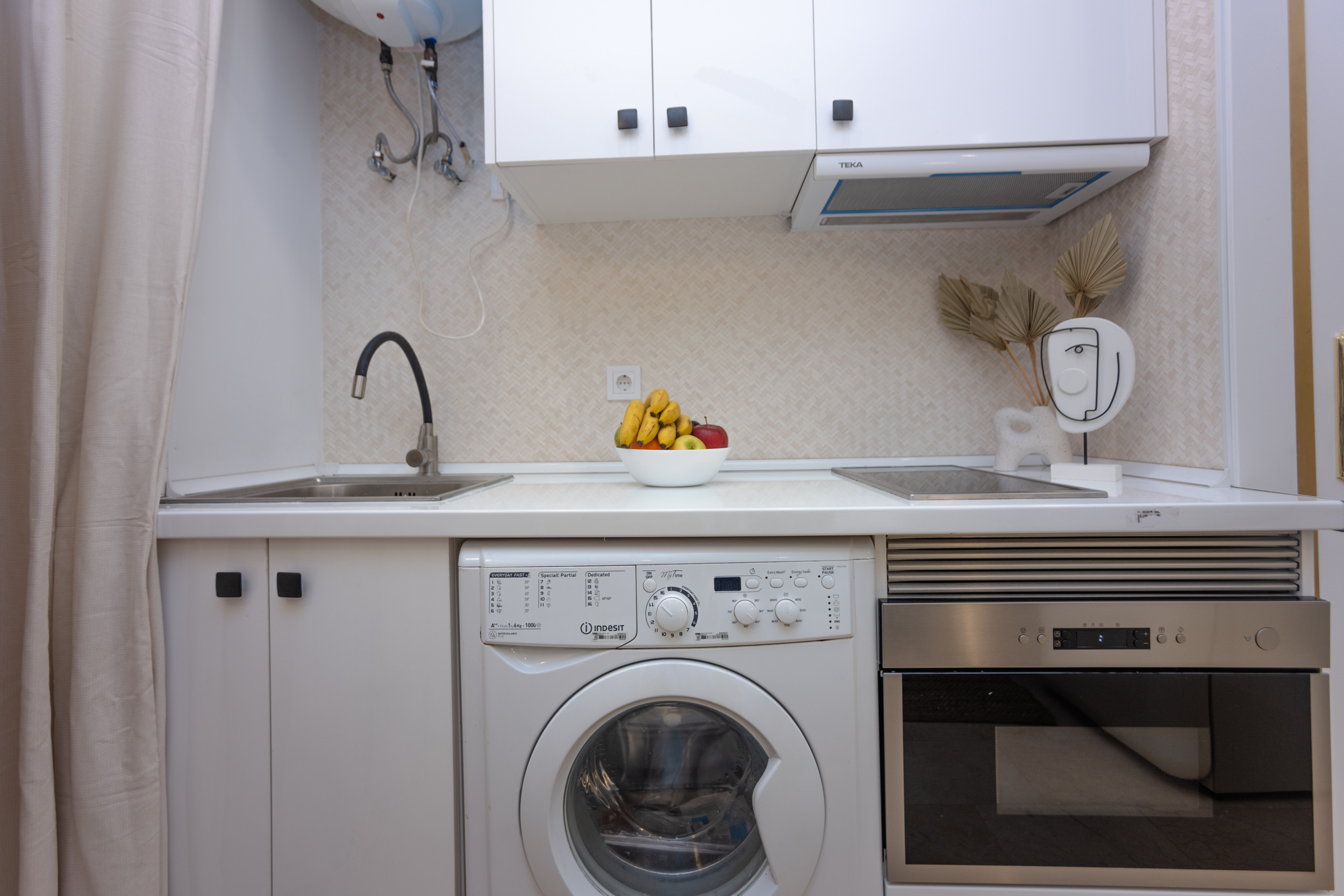 La cocina está totalmente integrada y equipada con todo lo necesario para cocinar tus propias comidas durante tu estancia, desde utensilios hasta electrodomésticos. Además, el apartamento cuenta con pequeños detalles que harán que disfrutes de una estancia inmejorable, como una iluminación cálida y acogedora y todo lo necesario para que puedas relajarte y disfrutar de tu tiempo libre.
