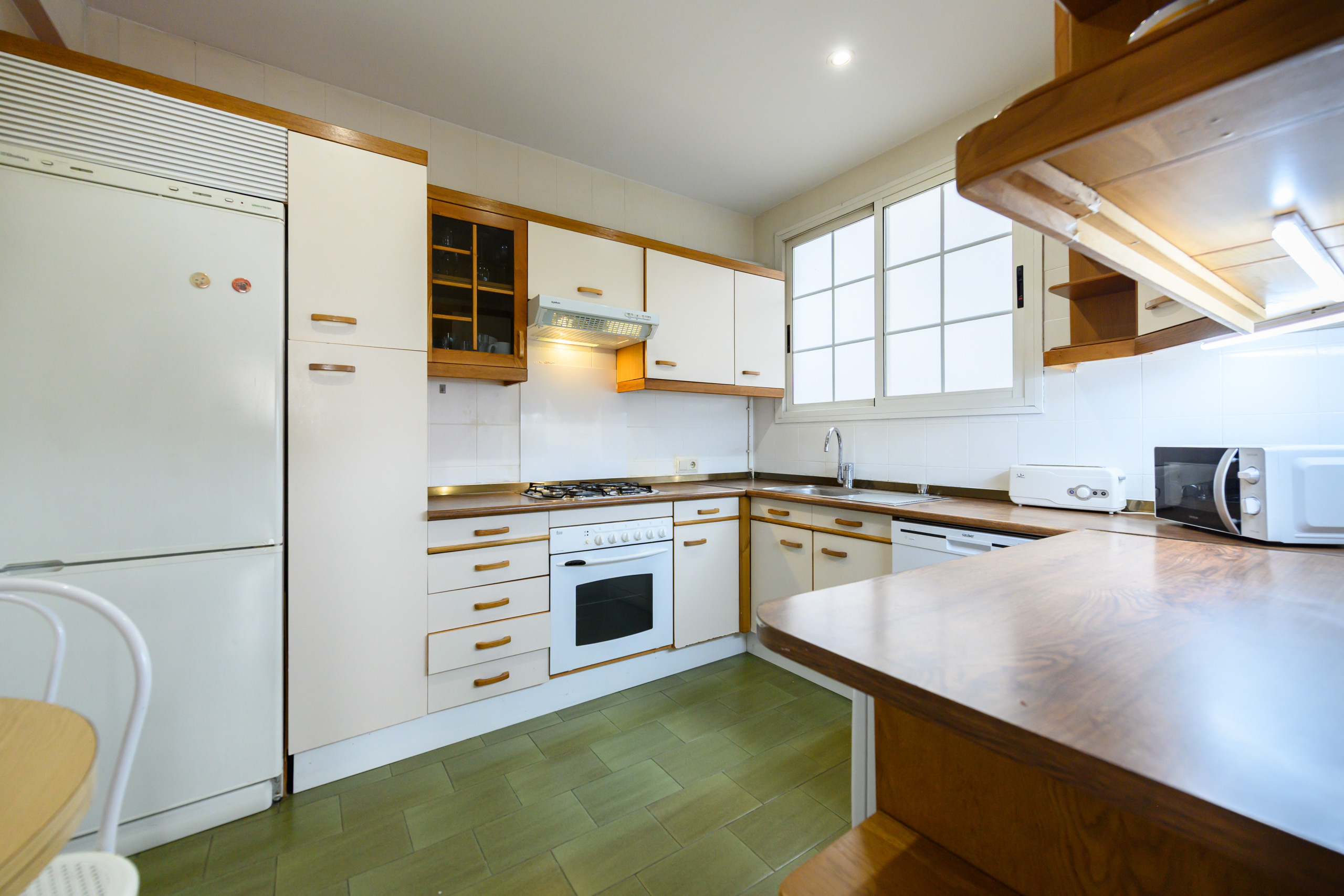Amplia cocina independiente, con vitrocerámica, nevera, microondas, horno, congelador, lavadora, vajilla/cubertería, utensilios/cocina, cafetera, tostadora, hervidor de agua. Absolutamente todo para una estancia muy agradable