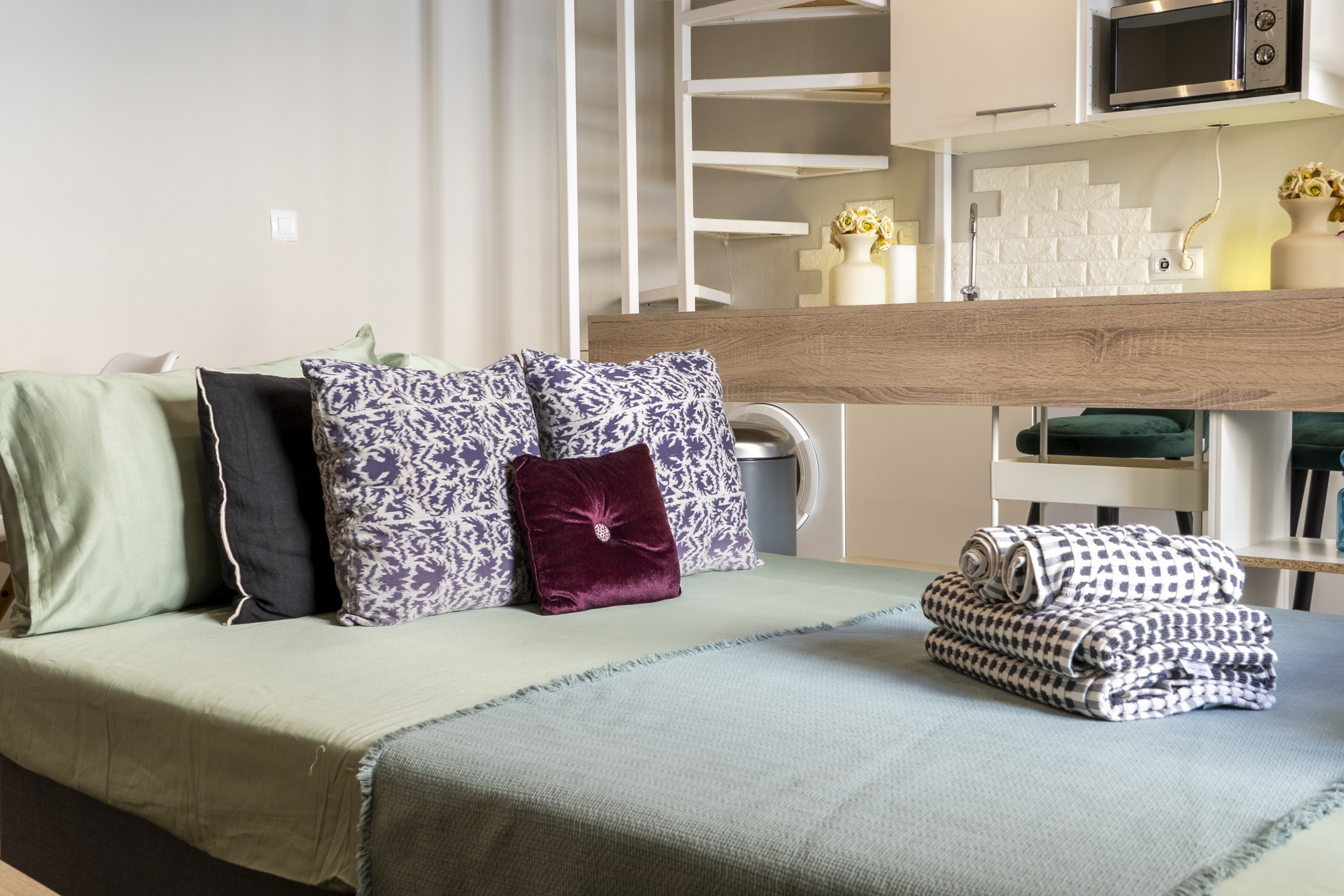 La planta baja está diseñada para ofrecer comodidad y funcionalidad en el día a día. El salón-comedor es un espacio moderno y acogedor, equipado con un sofá cama, ideal para recibir invitados o para utilizar como una zona de descanso adicional. La disposición del mobiliario y la decoración crean un ambiente cálido y confortable.