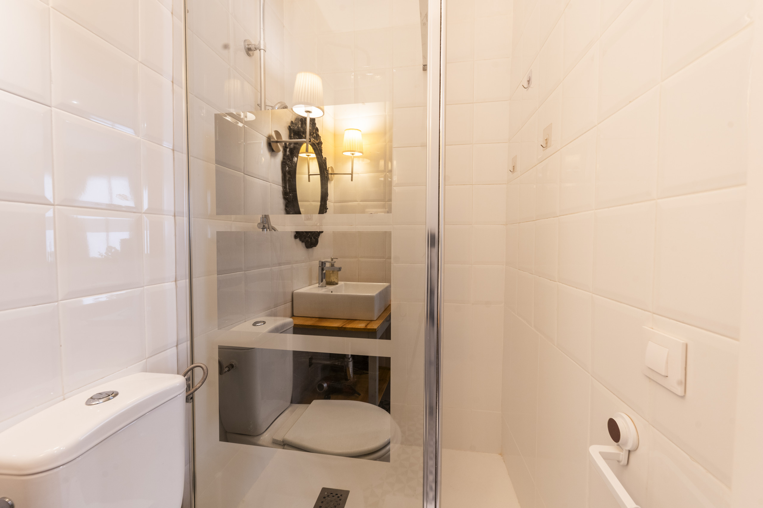 El baño completo cuenta con un plato de ducha, ofreciendo comodidad y un diseño moderno. Su distribución permite un uso eficiente del espacio, combinando funcionalidad y estética en cada detalle.