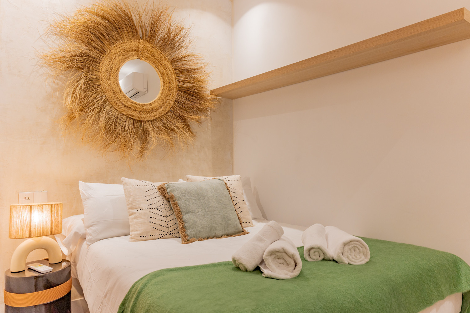 Cuenta con dos habitaciones amplias, cada una equipada con una cama doble de alta cali-dad para garantizar el máximo descanso. El espacio se completa con un salón comedor amplio y luminoso, con una cocina americana integrada y equipada con todos los electro-domésticos y utensilios necesarios para que puedas cocinar y sentirte como en casa desde el primer día.