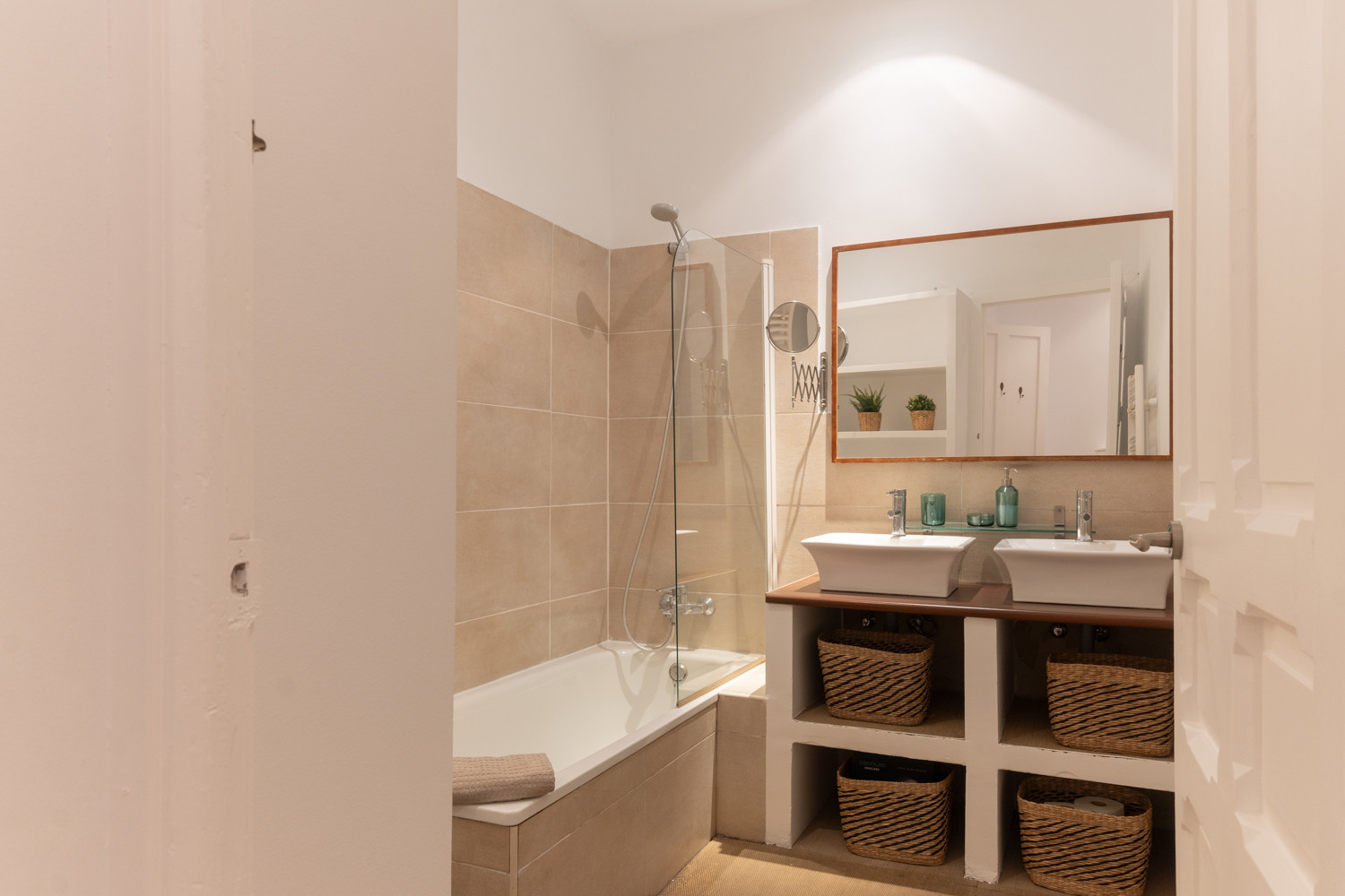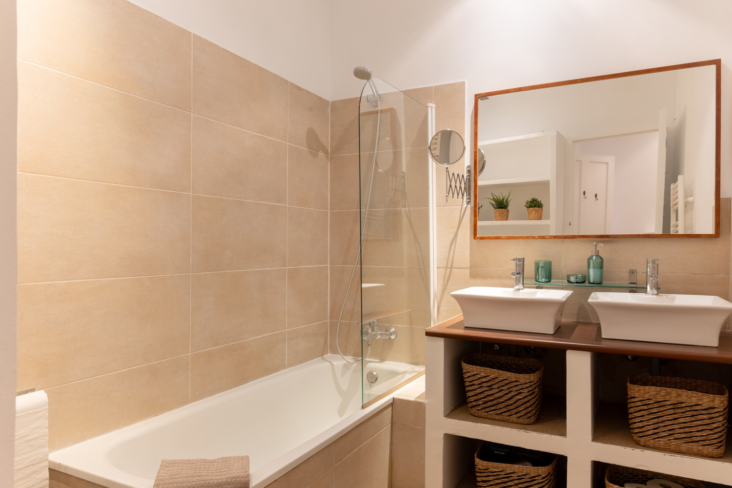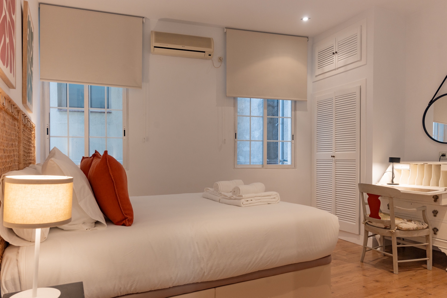 La vivienda dispone de dos habitaciones cómodas y funcionales. La habitación principal cuenta con un baño en suite equipado con bañera, ofreciendo un espacio privado y relajante. El segundo baño está diseñado con un moderno plato de ducha, brindando practicidad y estilo. Además, ambas habitaciones tienen un práctico escritorio, perfecto para quienes necesiten trabajar o estudiar desde casa.