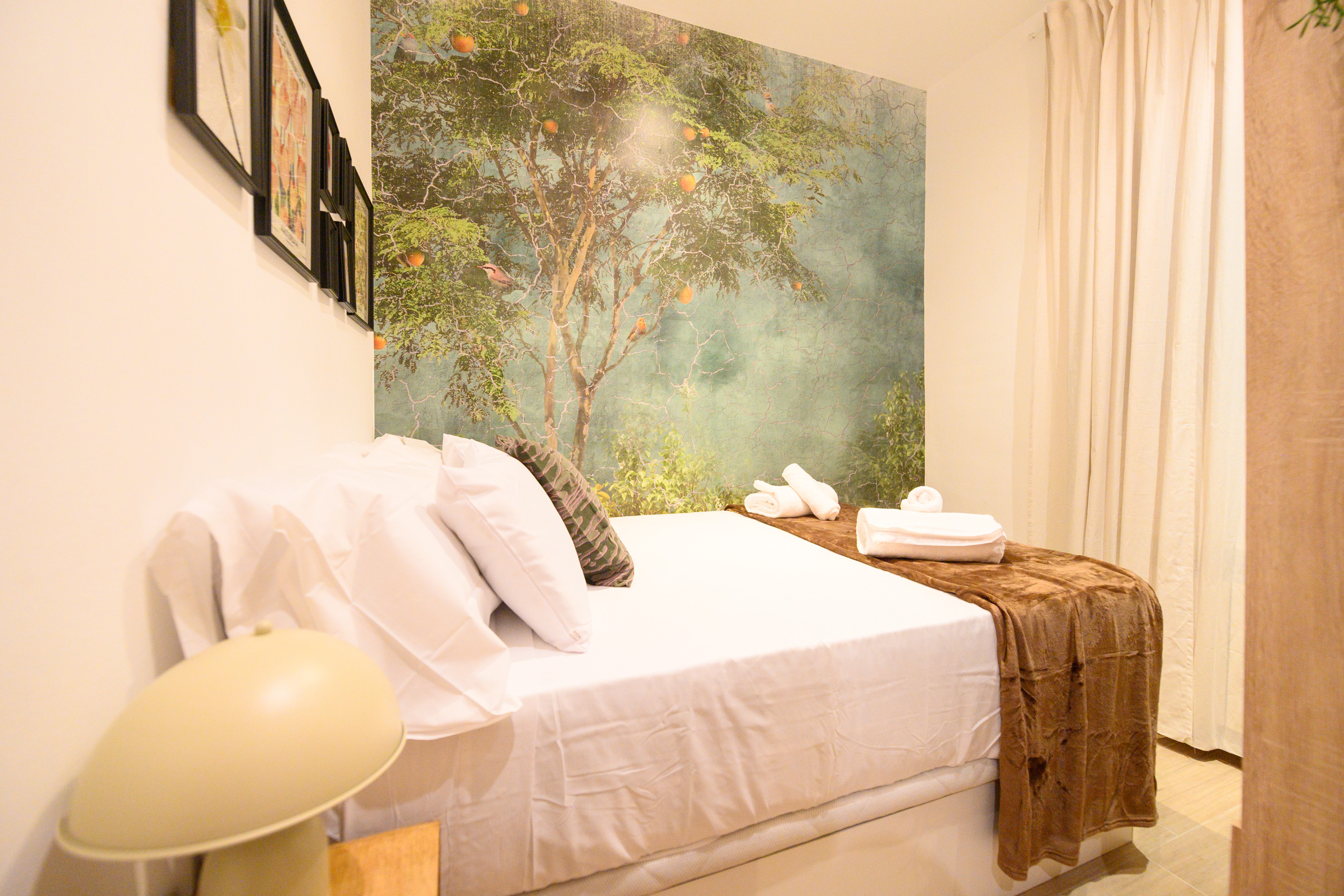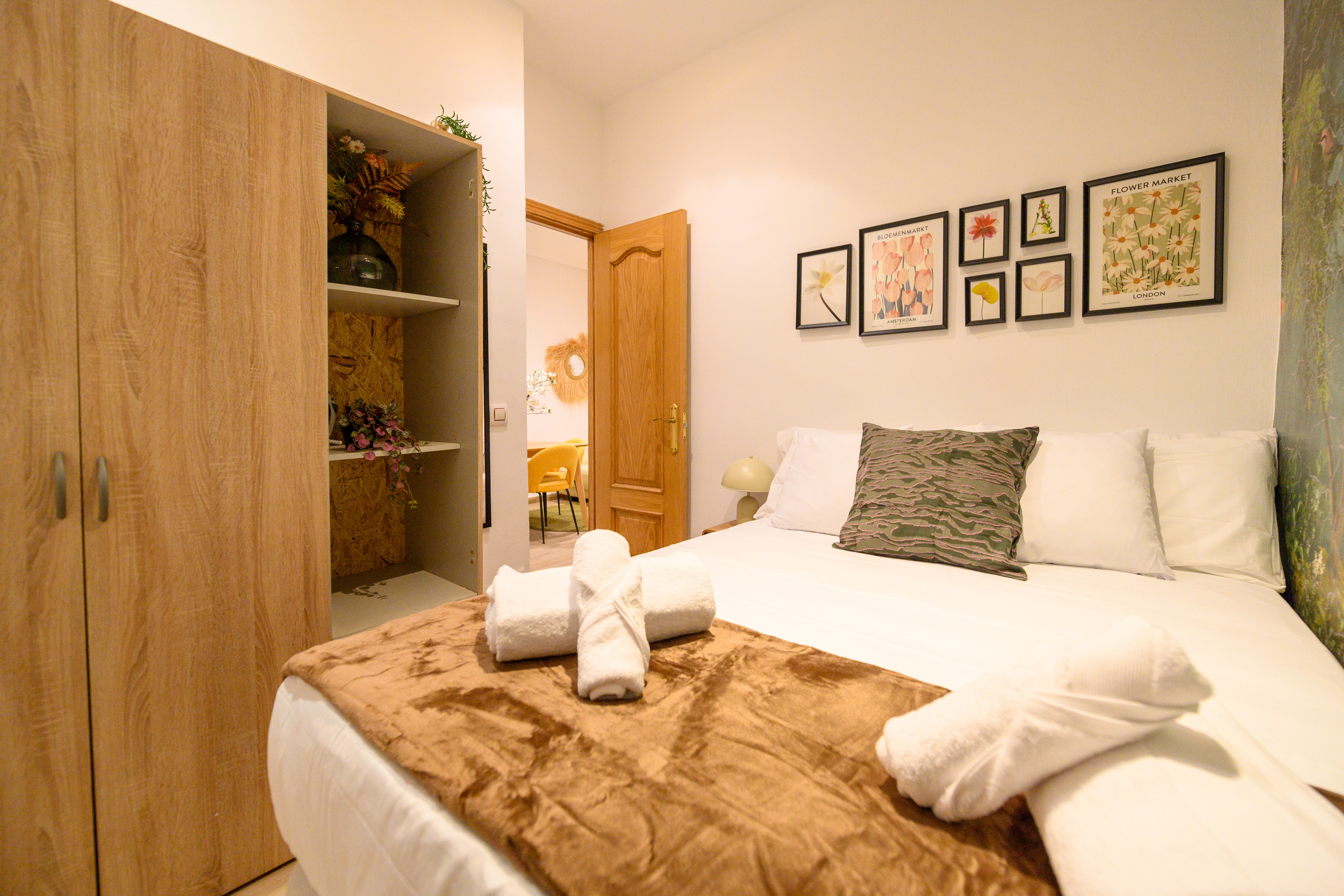 El apartamento cuenta con dos dormitorios, ambos equipados con camas dobles, lo que lo hace perfecto para parejas, familias pequeñas o compañeros de piso. Los dormitorios están diseñados para ofrecer un ambiente acogedor y relajante, con suficiente espacio de almacenamiento y una decoración moderna y funcional.