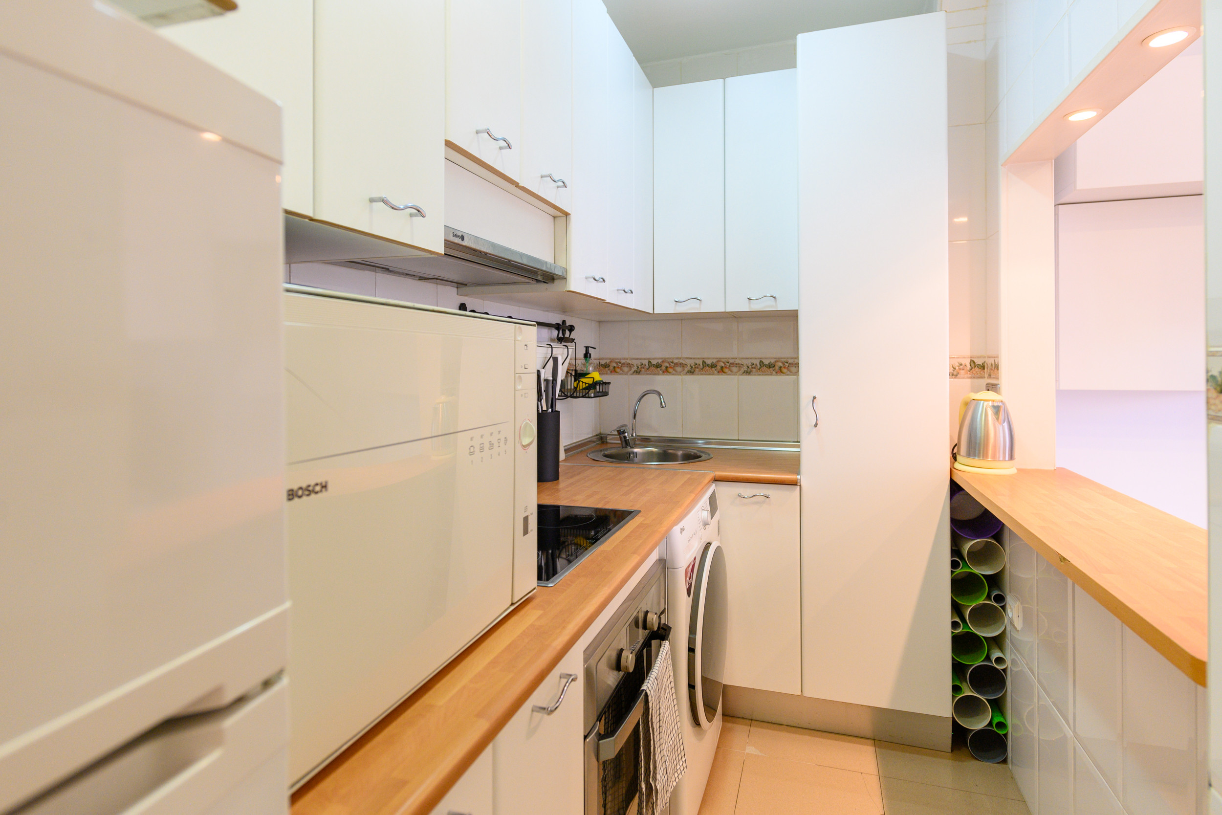 El salón-comedor es un espacio versátil y luminoso, equipado con un cómodo sofá cama ideal para recibir invitados. La cocina, independiente y totalmente equipada con electrodomésticos necesarios, permite preparar deliciosas comidas con total comodidad.