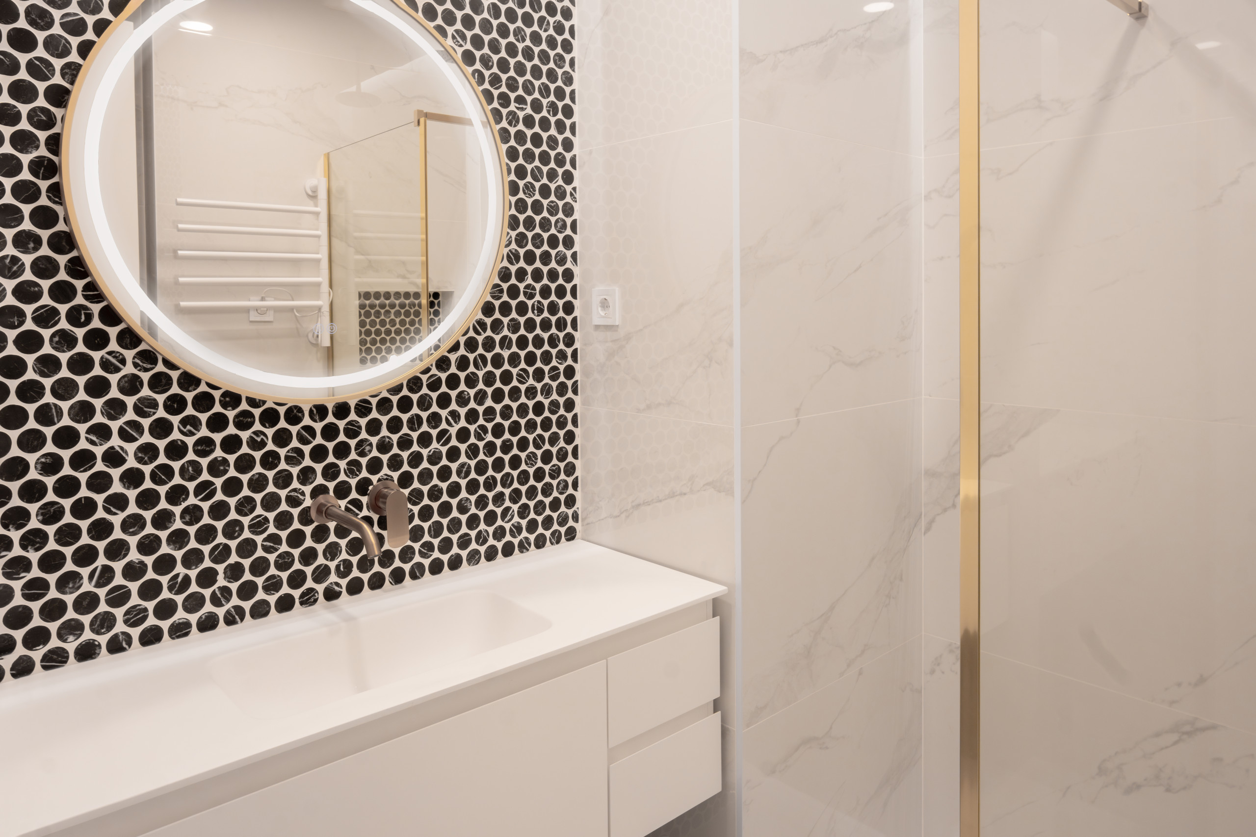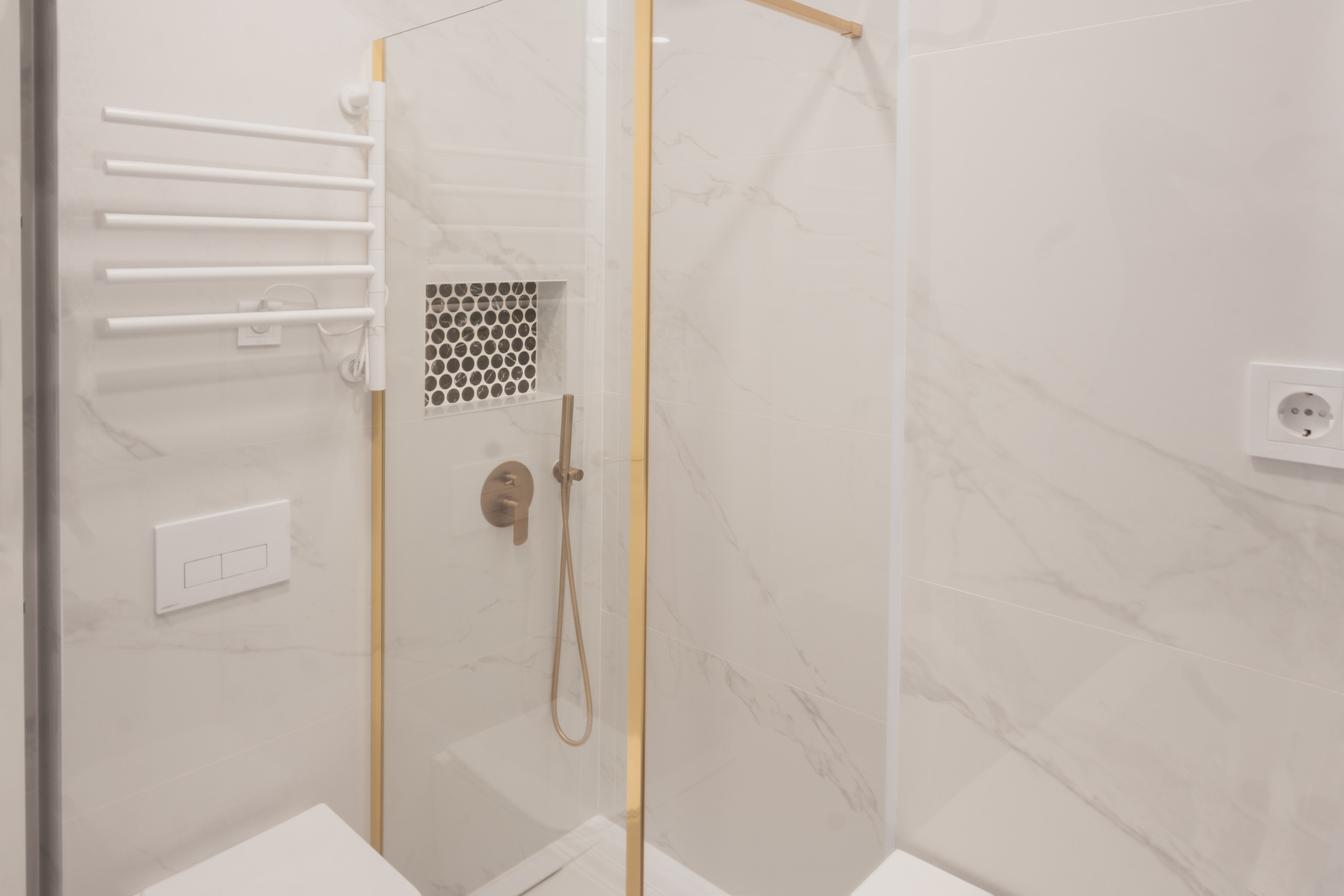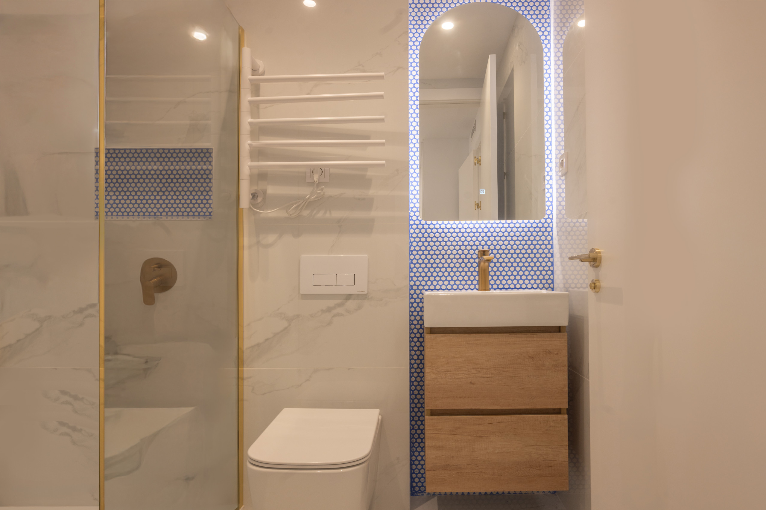 3 baños completos, todos con platos de ducha que ofrecen comodidad y un diseño contemporáneo, 1 aseo adicional, ideal para visitas.