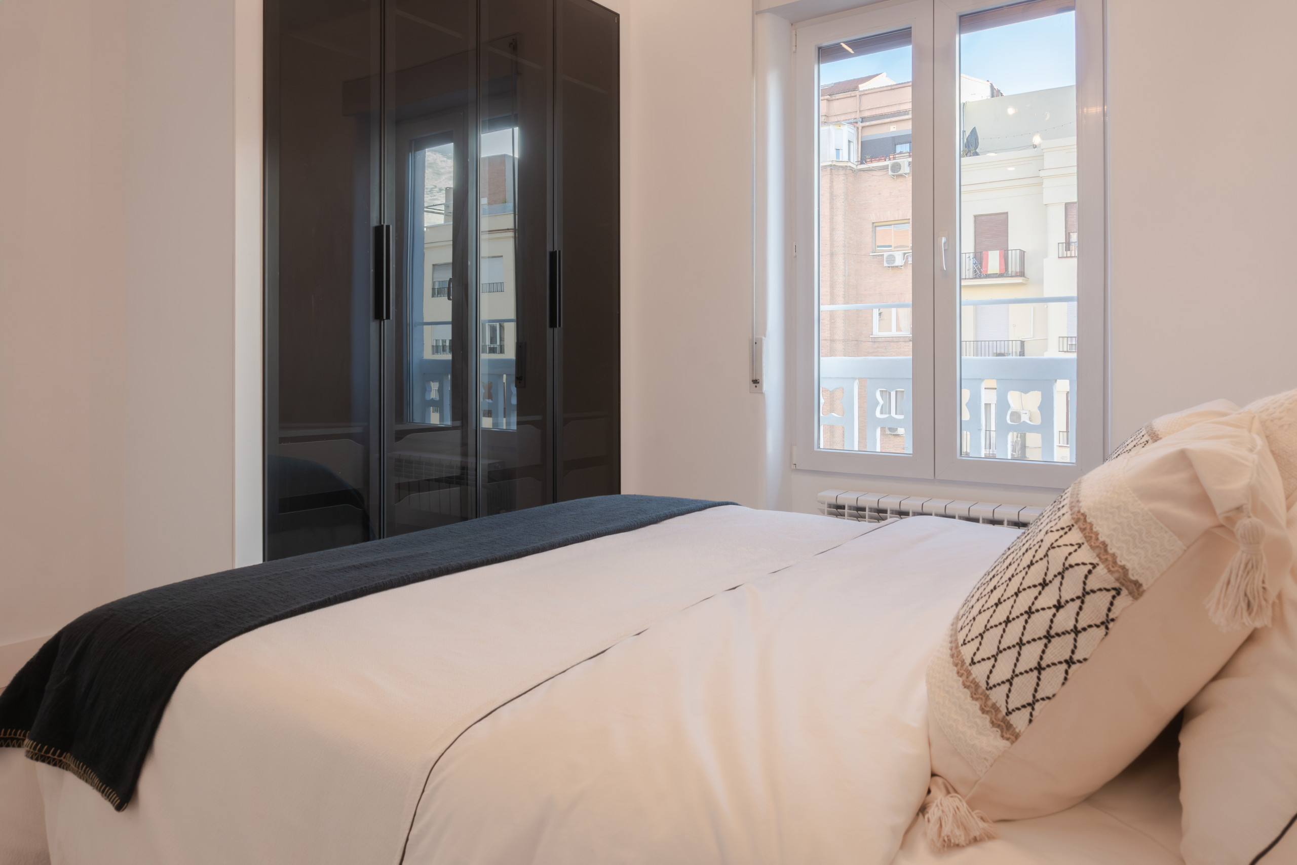 Amplias vistas desde los balcones del salón y el balcón del dormitorio principal, que conecta con el entorno urbano de la calle Alcalde Sainz de Baranda.