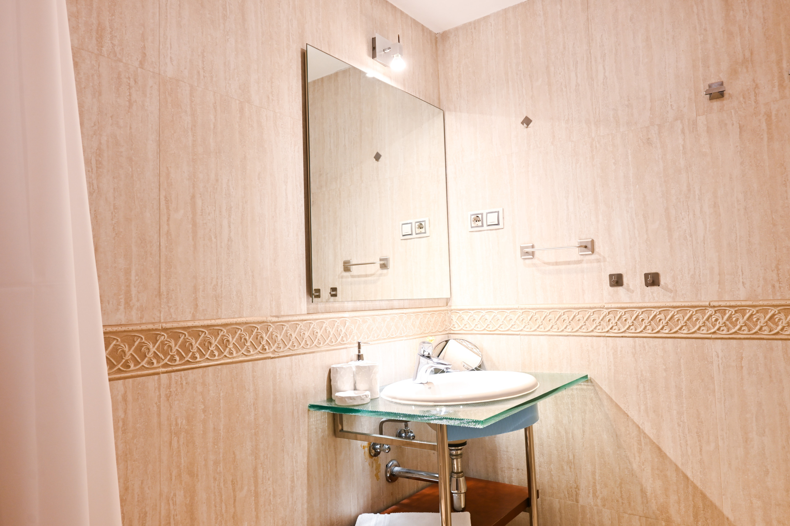 Los dos dormitorios están diseñados para ofrecerte el máximo confort y privacidad, con confortables camas dobles y ropa de cama suave y acogedora. Ambos espacios reflejan la misma atención al detalle y elegancia que el resto del apartamento. Uno de los baños está equipado con un amplio plato de ducha, mientras que el otro ofrece una comoda bañera para que puedas relajarte y mimarte.