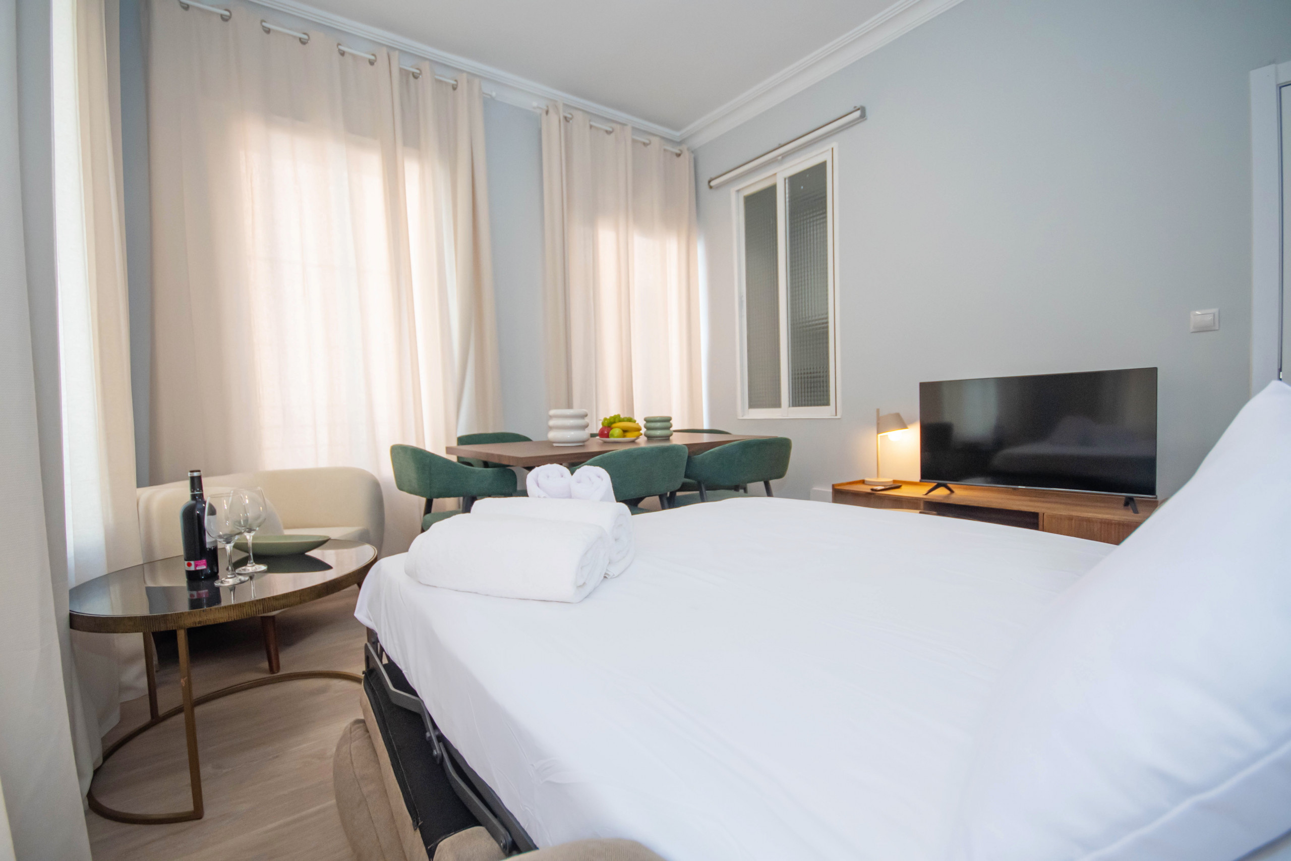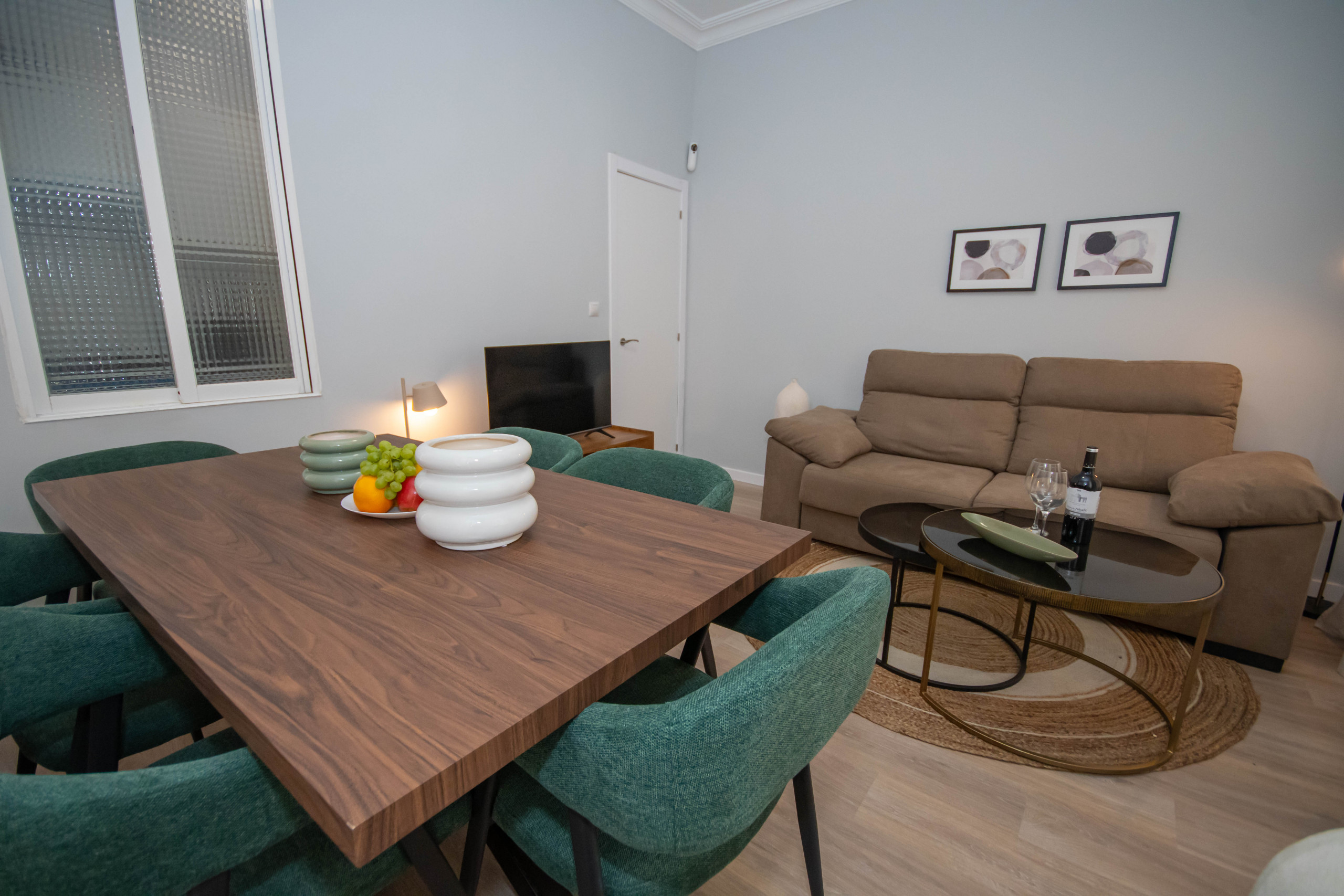 Esta espaciosa vivienda te ofrece todo lo que necesitas para disfrutar de una estancia cómoda y acogedora en la ciudad. Con tres dormitorios, dos de ellos con camas matrimoniales y uno con una cama individual, perfecto para familias o grupos de amigos que deseen compartir momentos especiales juntos.