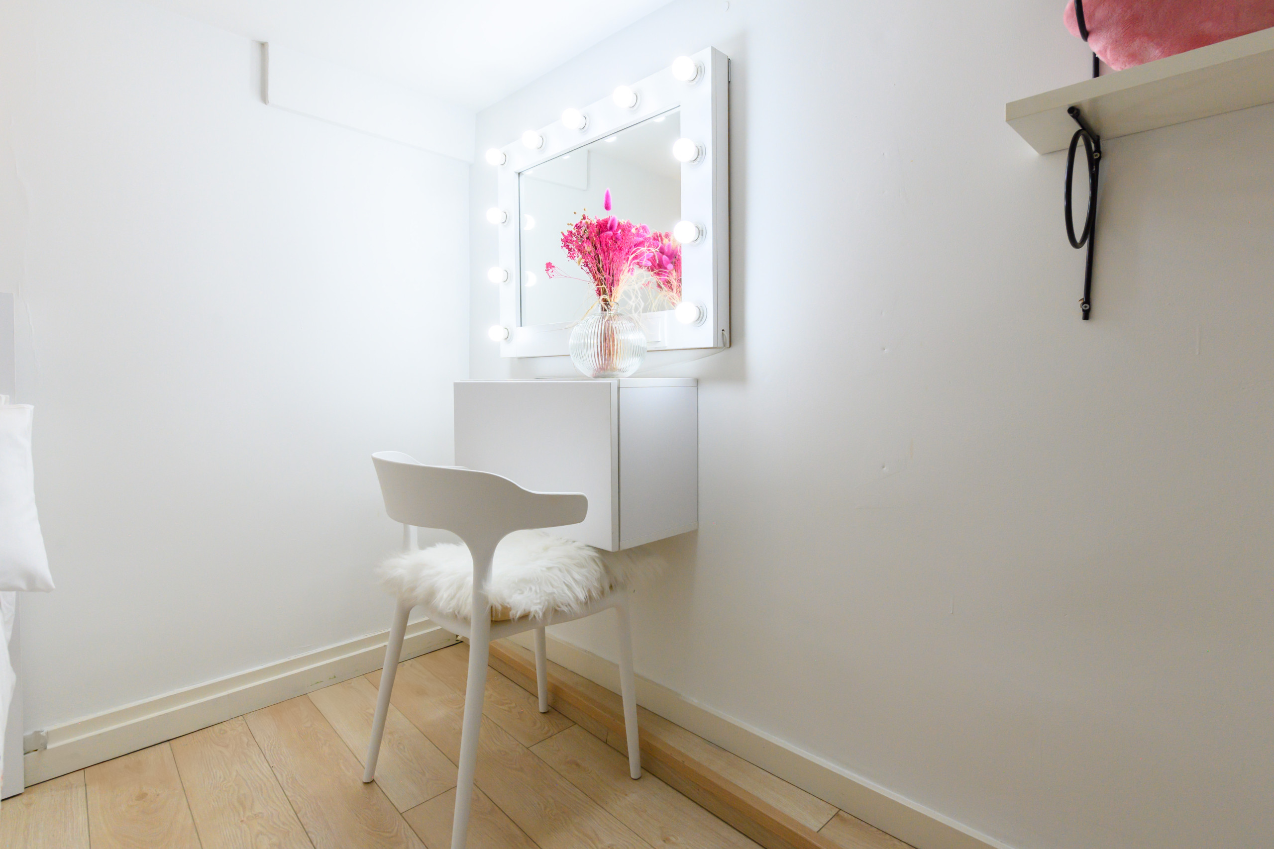 En la planta superior se encuentra el dormitorio principal, muy espacioso y versátil, con dos camas personales, un práctico vestidor y una cómoda de maquillaje que aportan confort y organización.