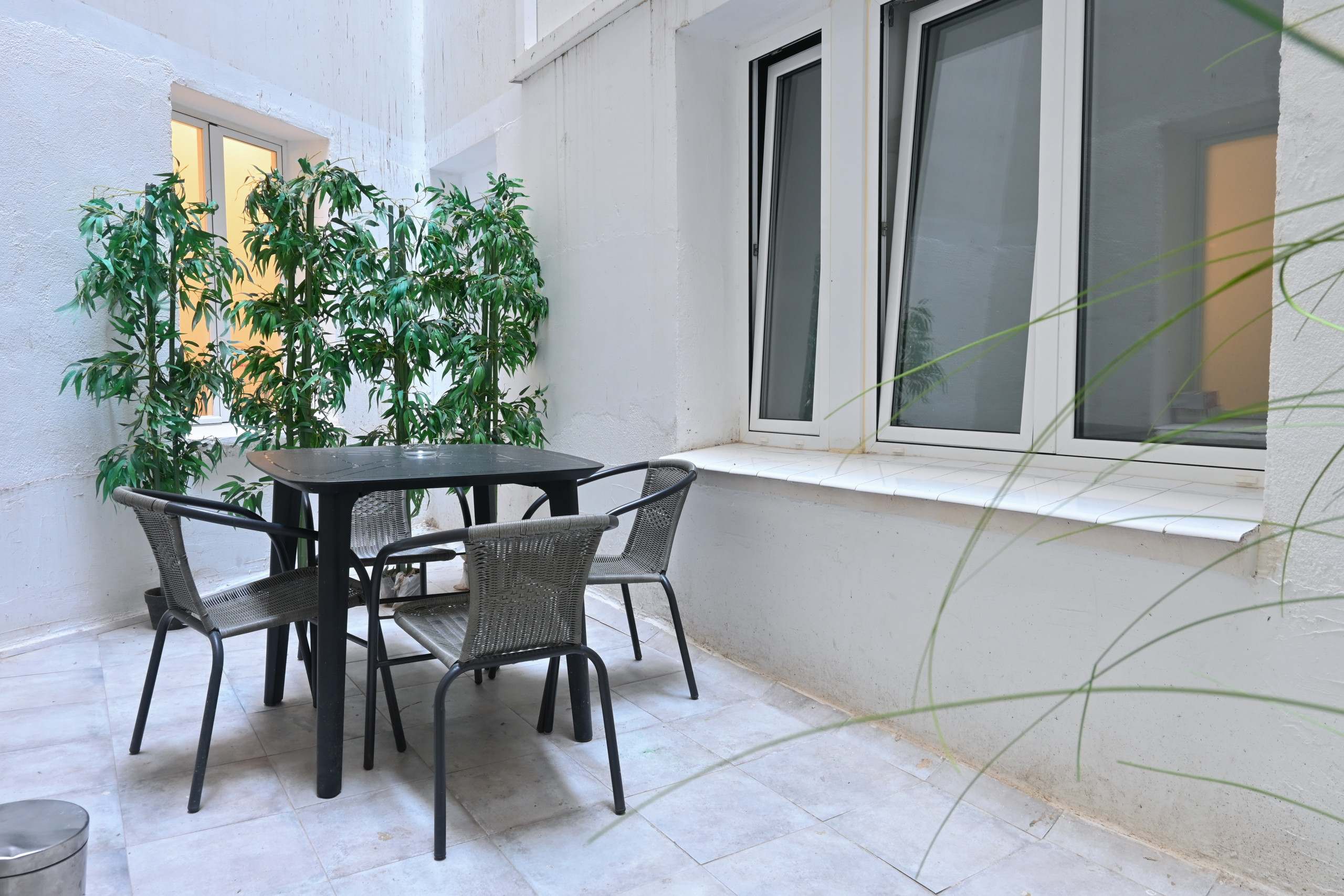 El patio interior es el lugar perfecto para relajarse y disfrutar de una comida al aire libre. Con una mesa y sillas, donde podrás disfrutar de un buen café o cenas al aire libre. Uno de los dormitorios cuenta con un pequeño vestidor, para que puedas organizar tus pertenencias de manera cómoda y práctica.