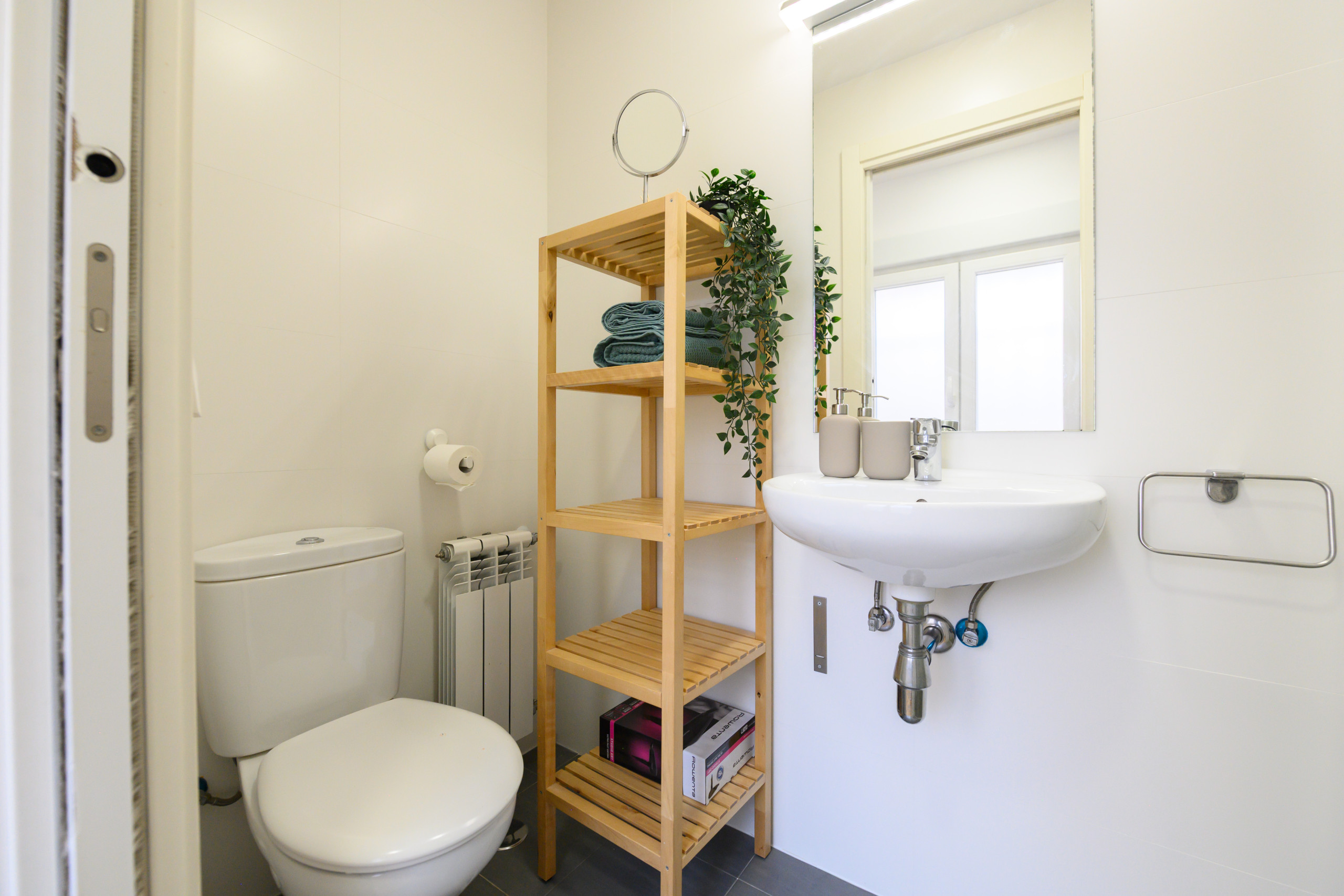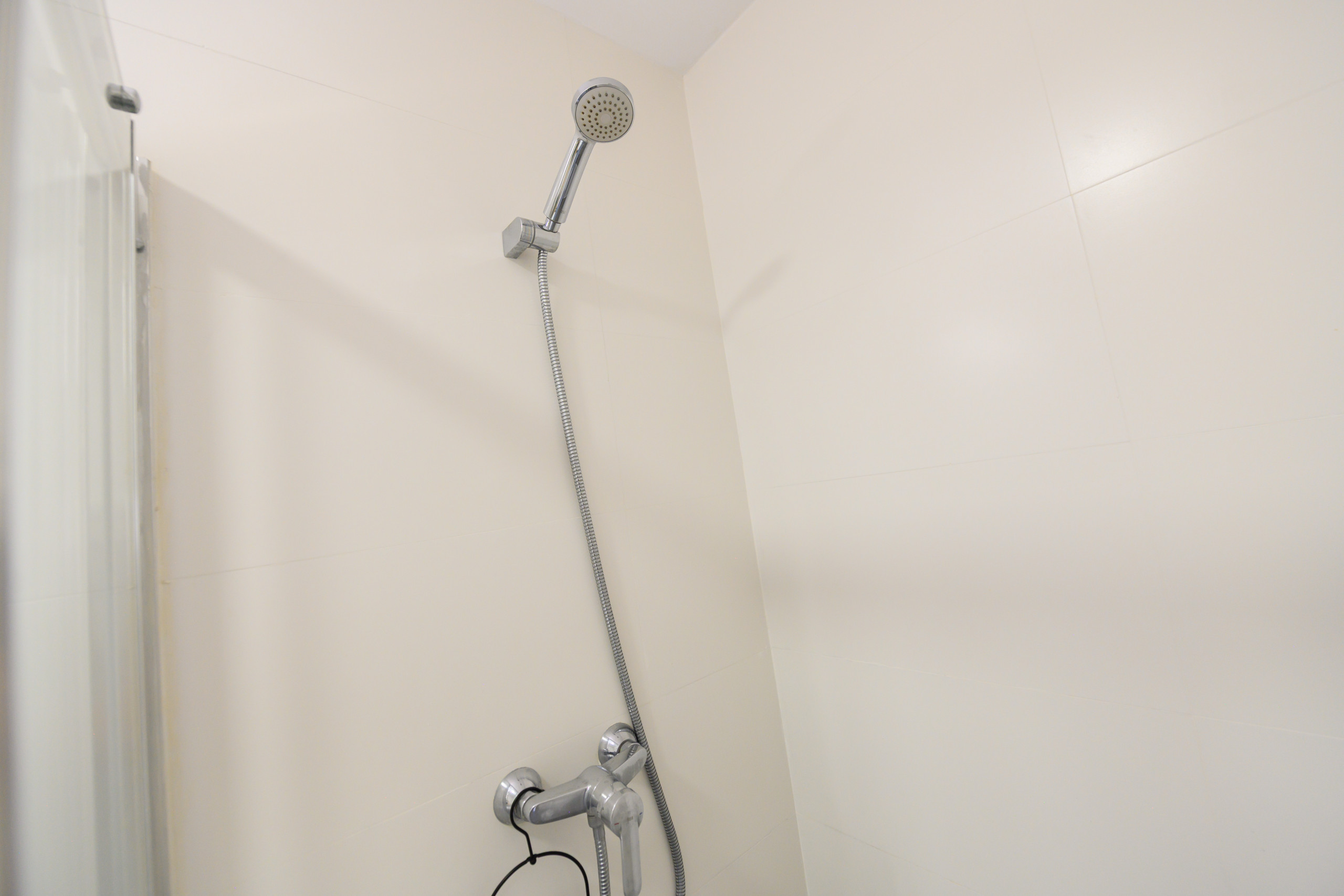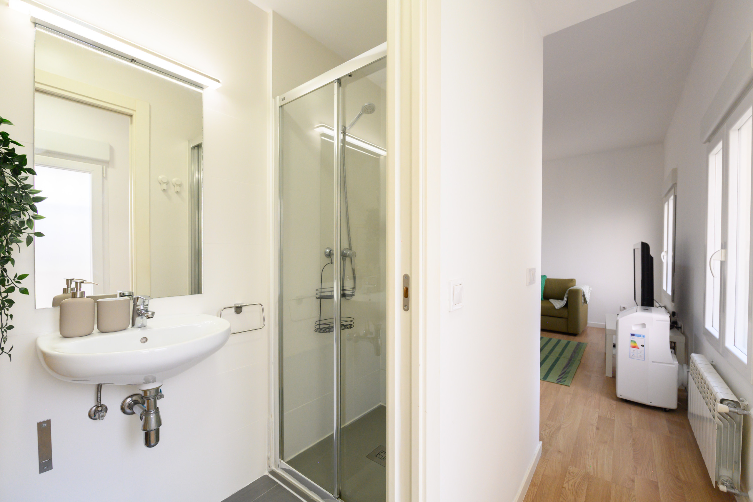 El baño completo dispone de un moderno plato de ducha, espejo, lavabo y todos los elementos esenciales para tu higiene y comodidad.