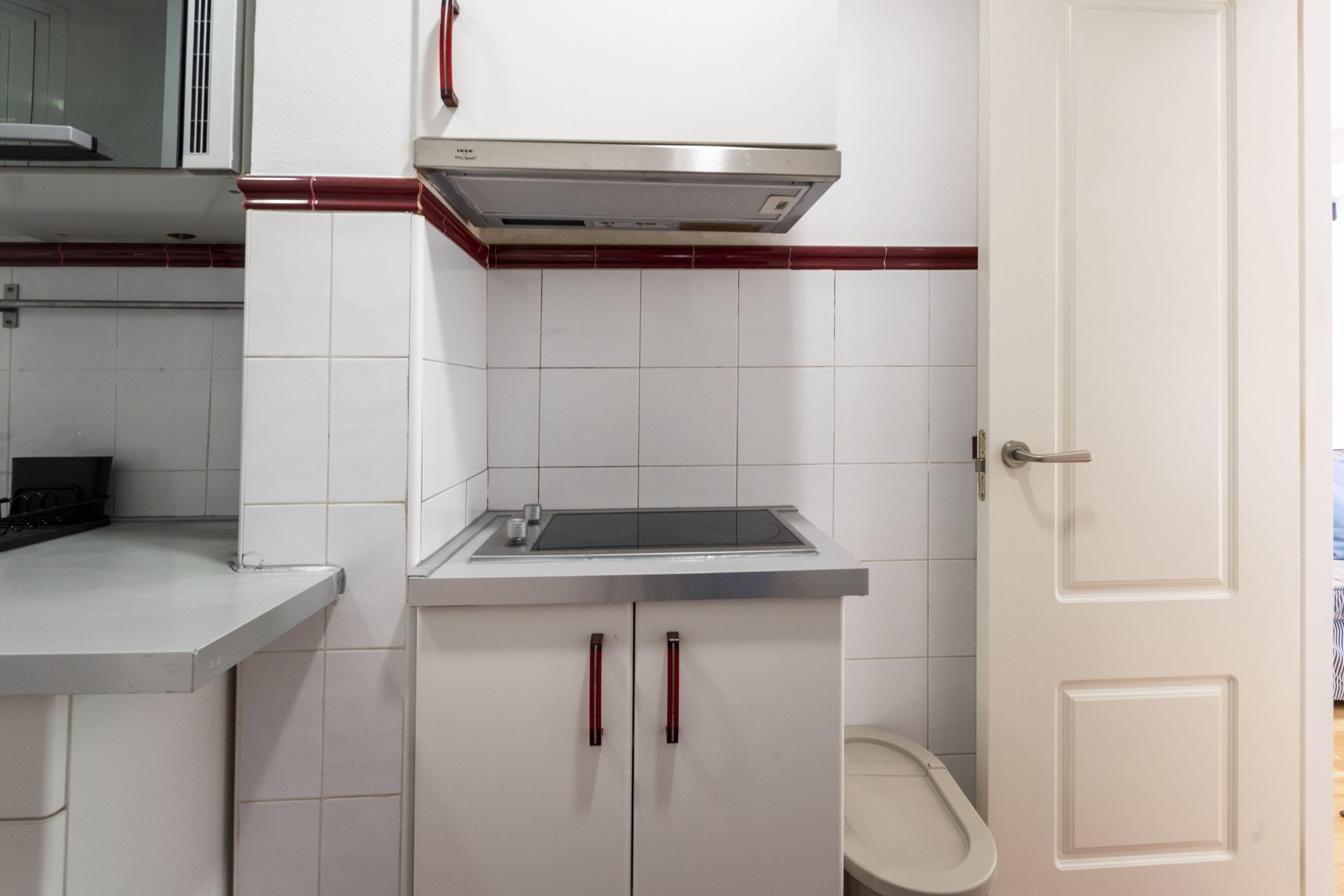 La cocina está completamente equipada: nevera, microondas y vitrocerámica, todo listo para que disfrutes preparando tus platos favoritos. El baño, moderno y funcional, cuenta con un práctico plato de ducha.