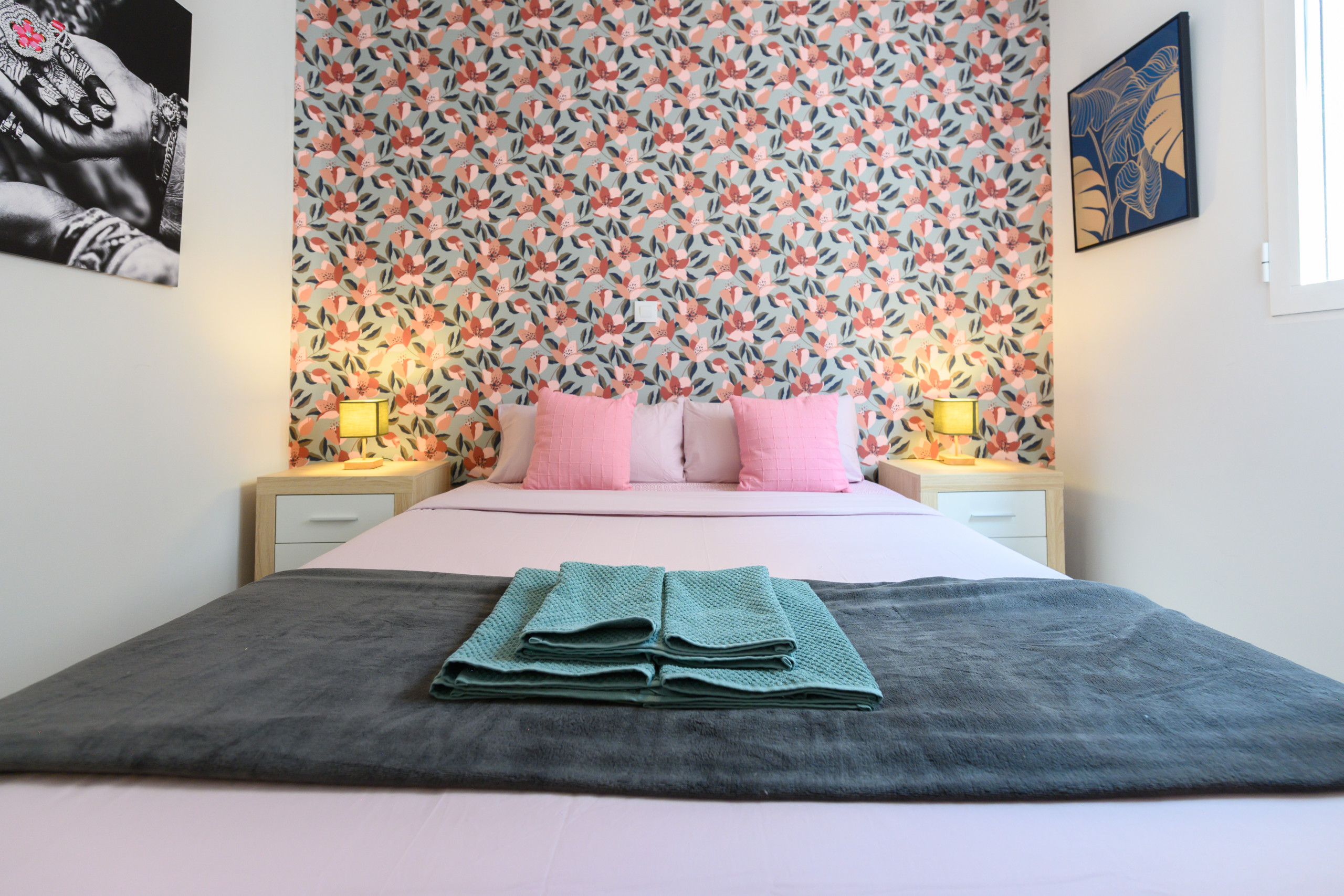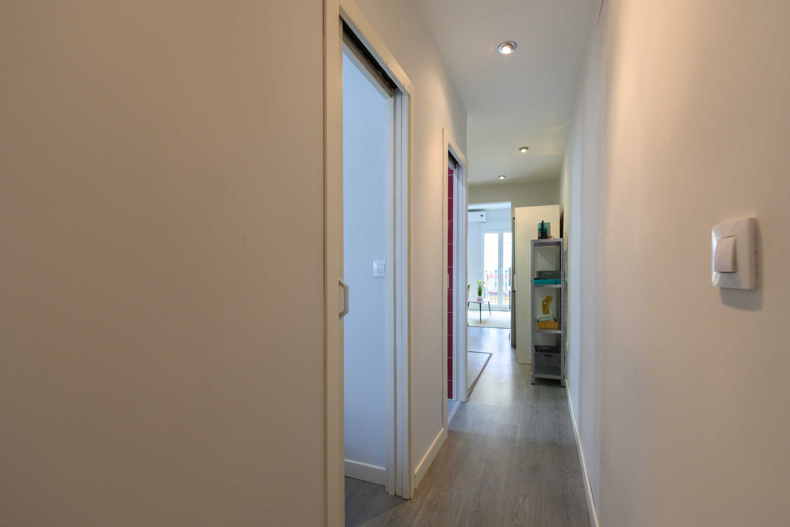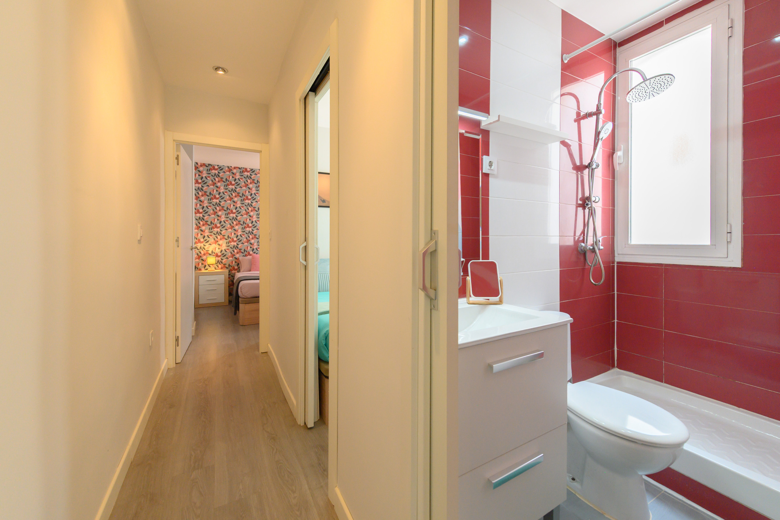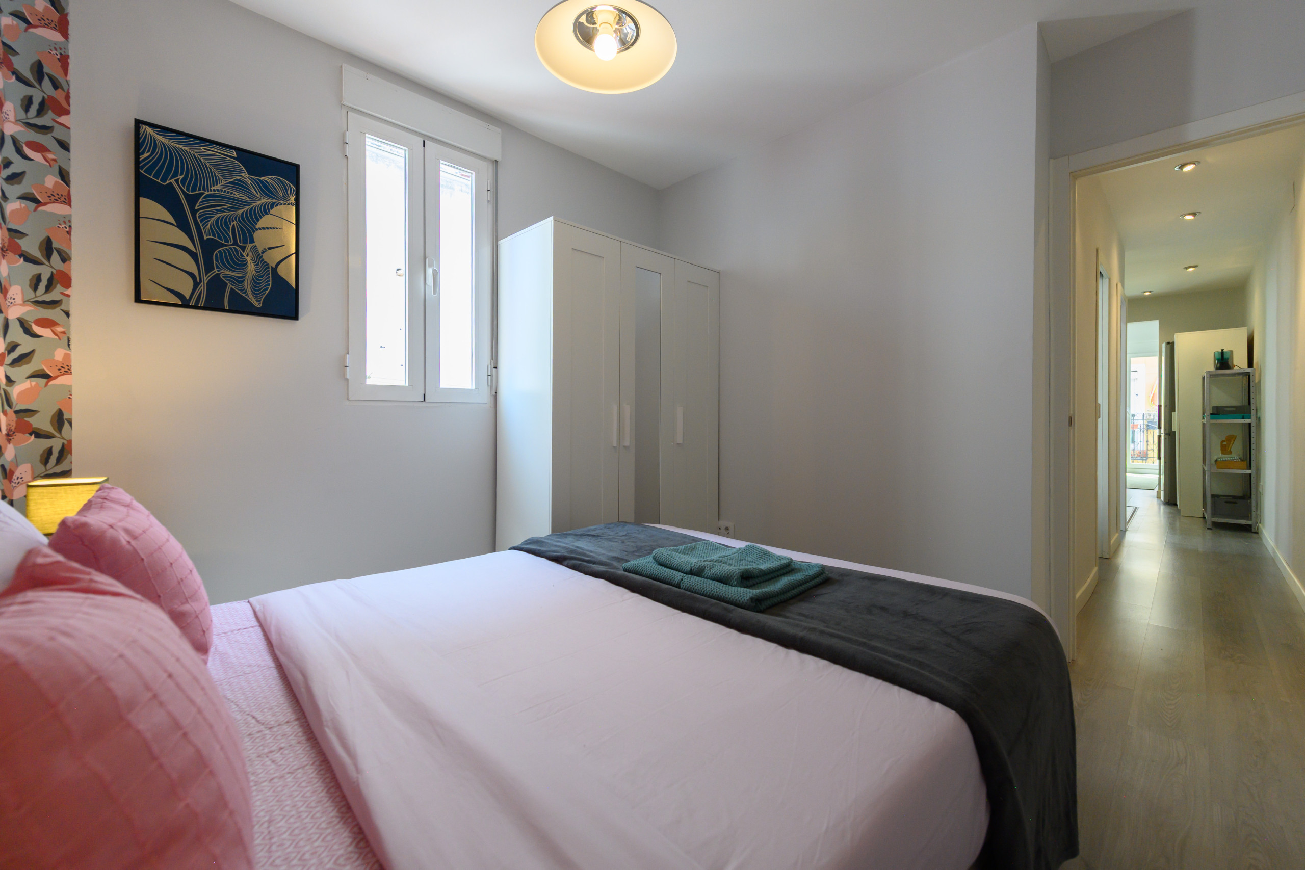 El piso dispone de dos dormitorios independientes, ambos con camas matrimoniales y armarios , proporcionando espacio de almacenamiento suficiente para estancias cortas o prolongadas. Las habitaciones están cuidadosamente diseñadas para ofrecer el máximo descanso, en un ambiente confortable.