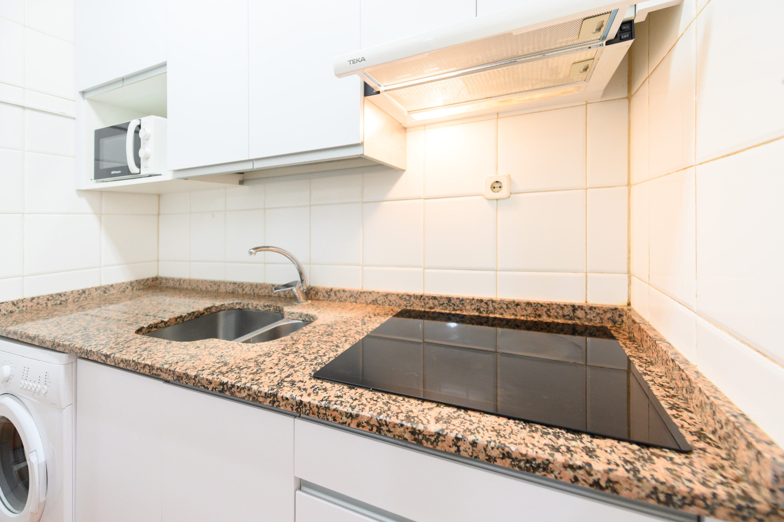El salón comedor es perfecto para relajarse después de un día de turismo o trabajo, e incluye una televisión para disfrutar de momentos de descanso. La cocina, completamente independiente, cuenta con todos los electrodomésticos necesarios para estancias largas o cortas: nevera, microondas, lavadora y menaje completo.
