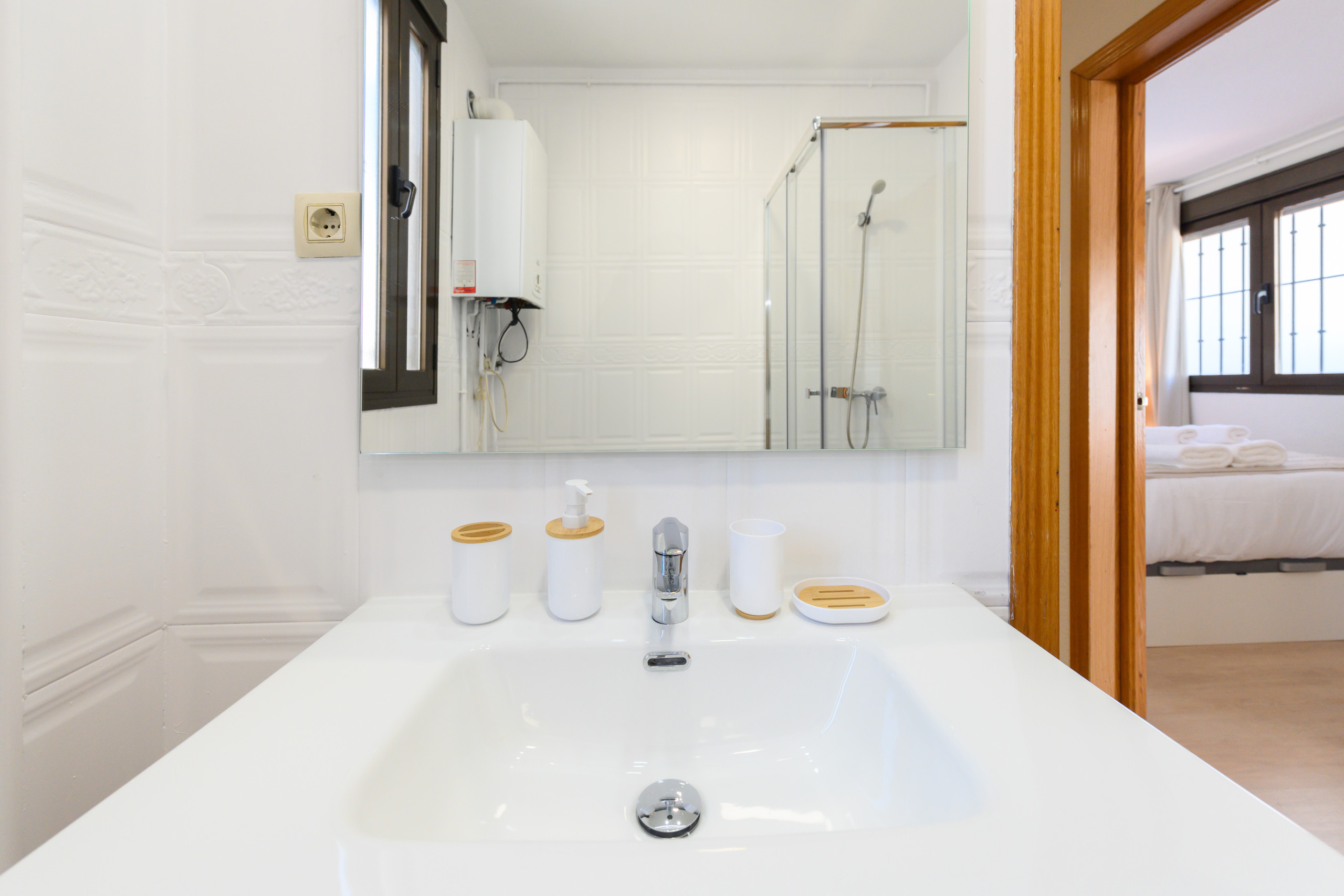 El baño completo, dispone de un práctico plato de ducha, diseñado para ofrecer funcionalidad y estilo.