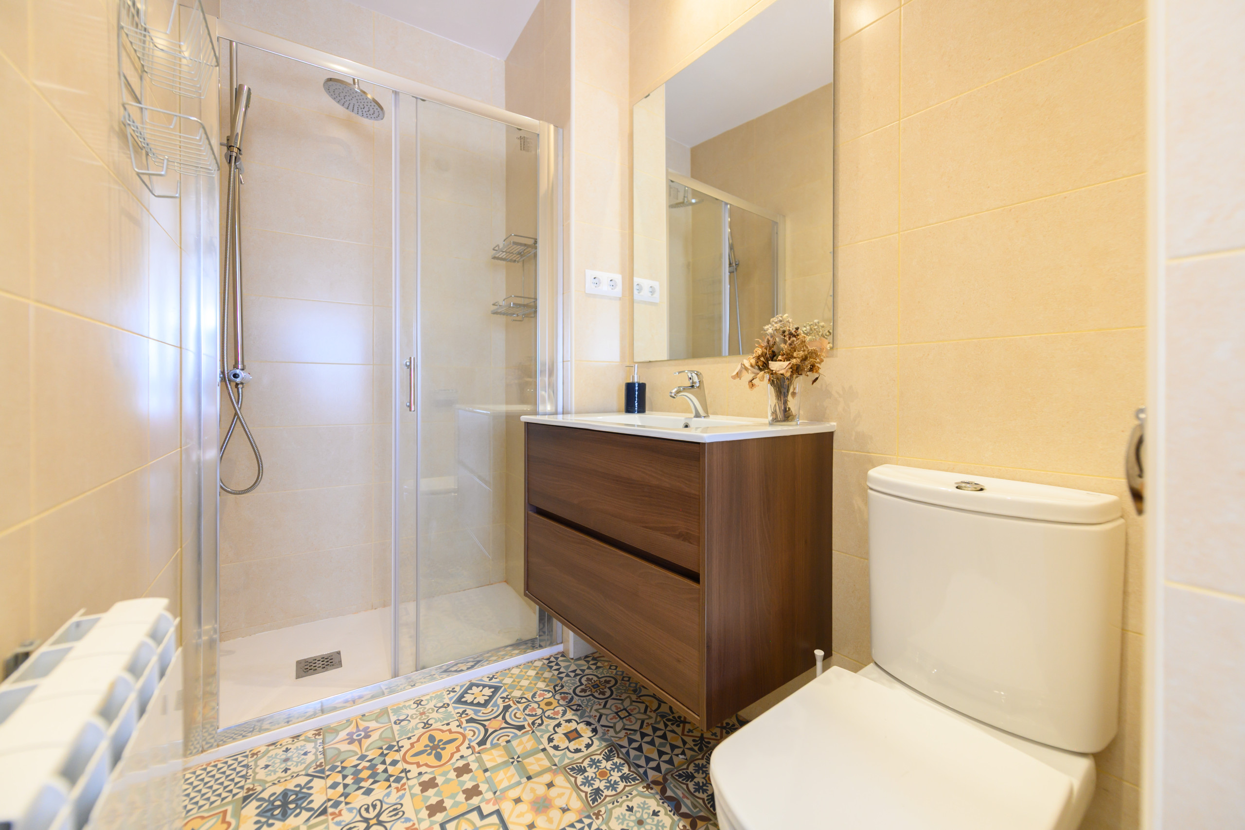 Dos baños completos, modernos y funcionales, cada uno con plato de ducha, mueble de lavabo y espejo, perfectos para mayor privacidad y confort.
