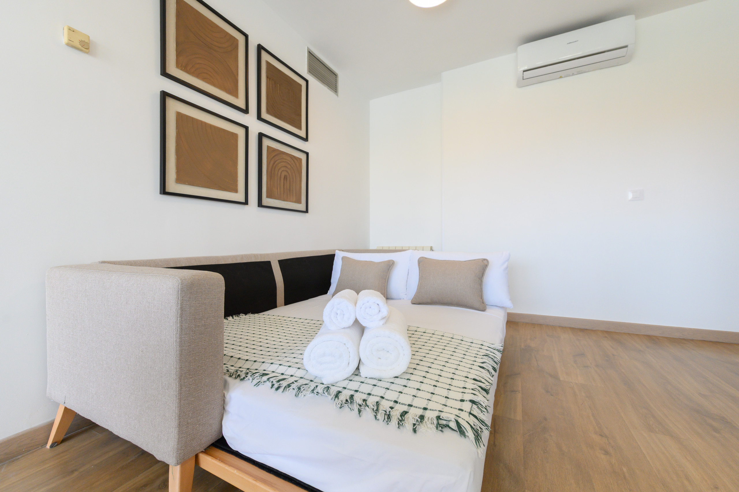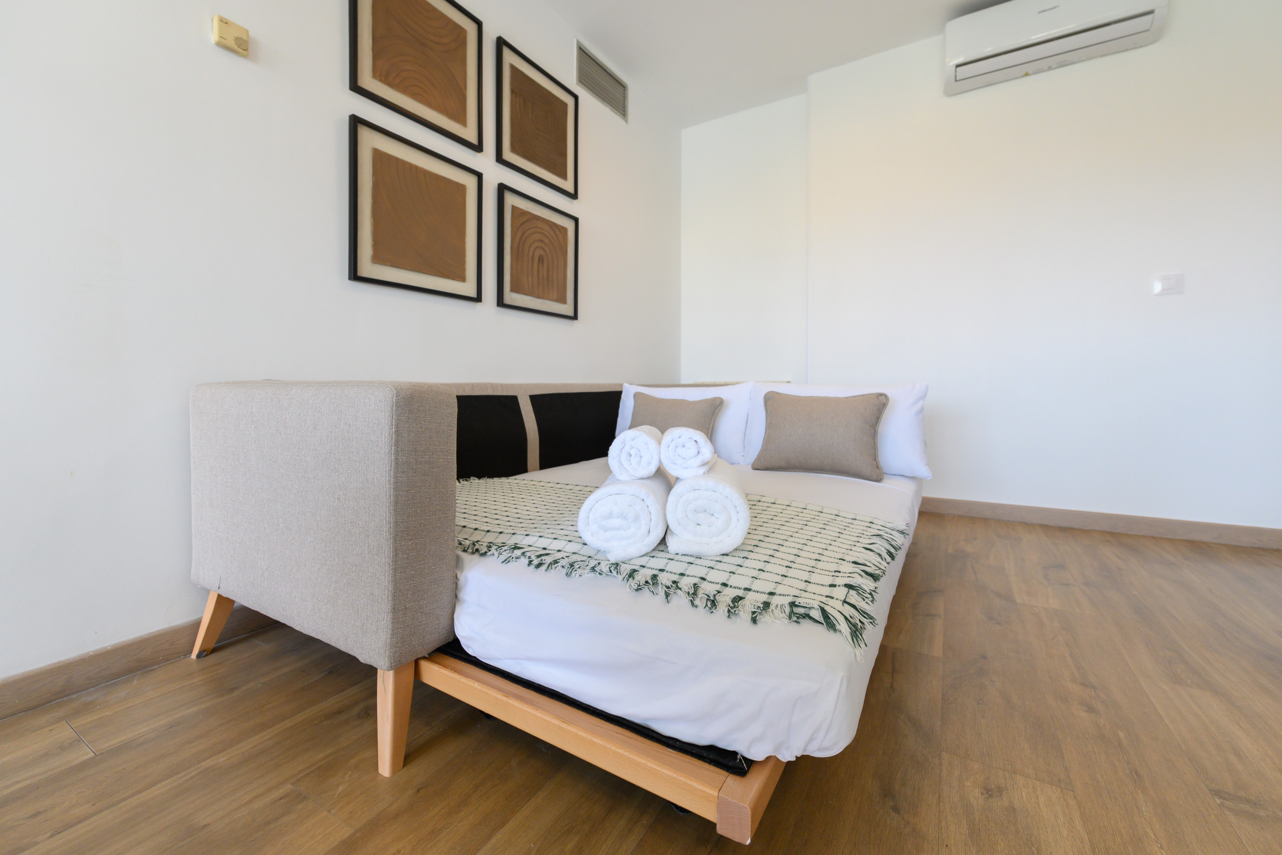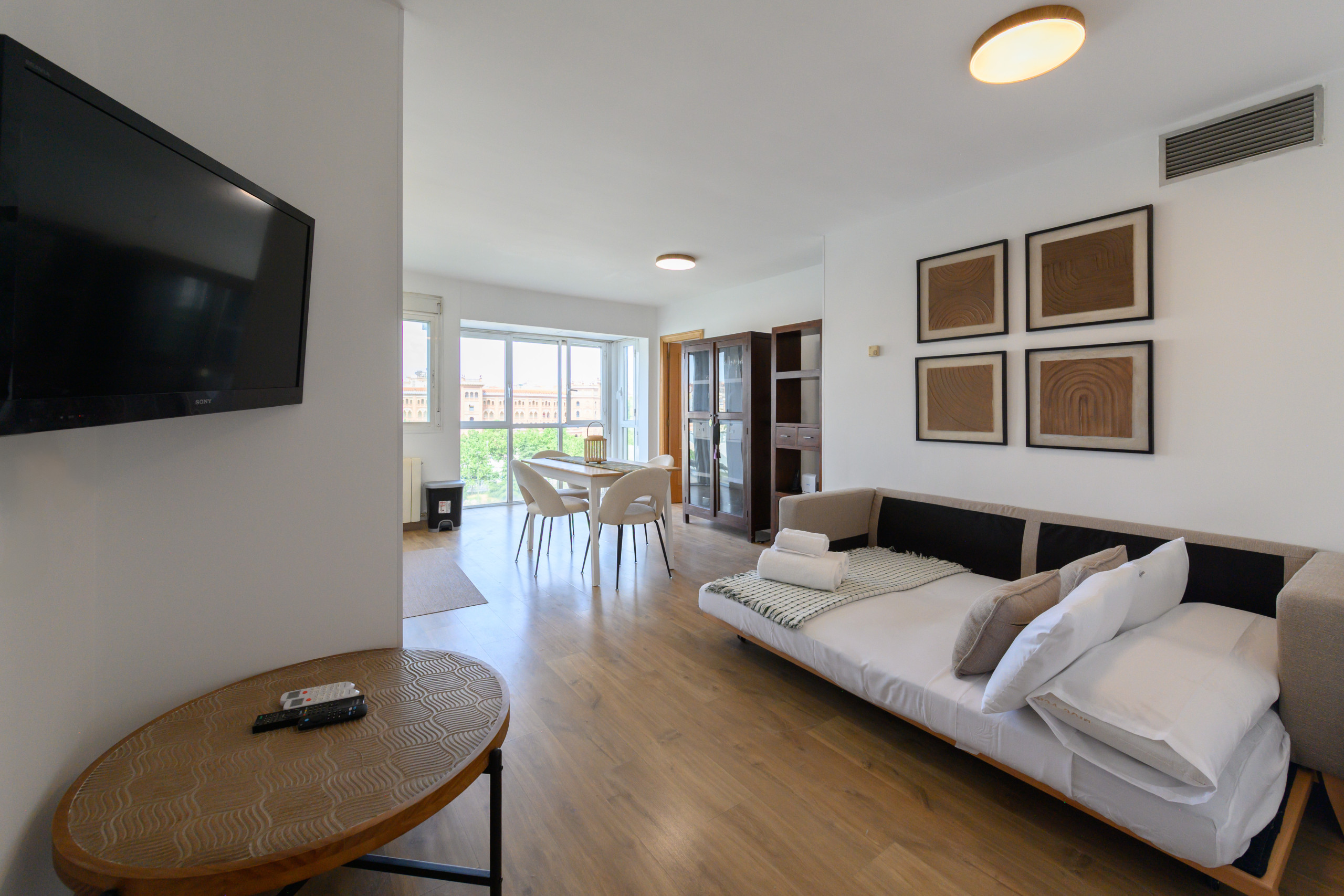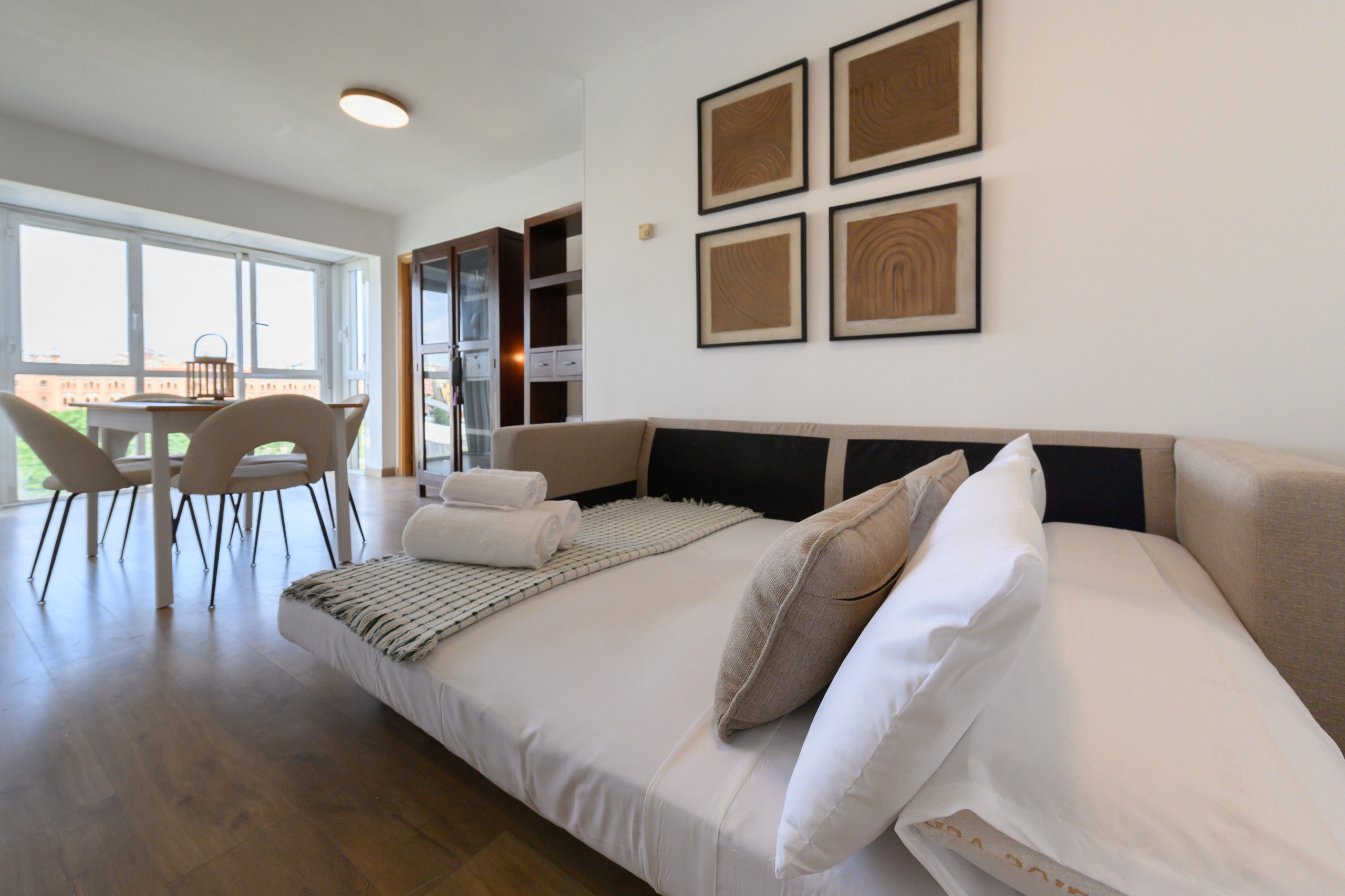 › Apartamentos de vacaciones España › Apartamentos de vacaciones Madrid › Apartamentos de vacaciones Ciudad Lineal › Piso moderno de 1 dormitorio con ventanales y sofá cama para invitados en Madrid.Temporal
