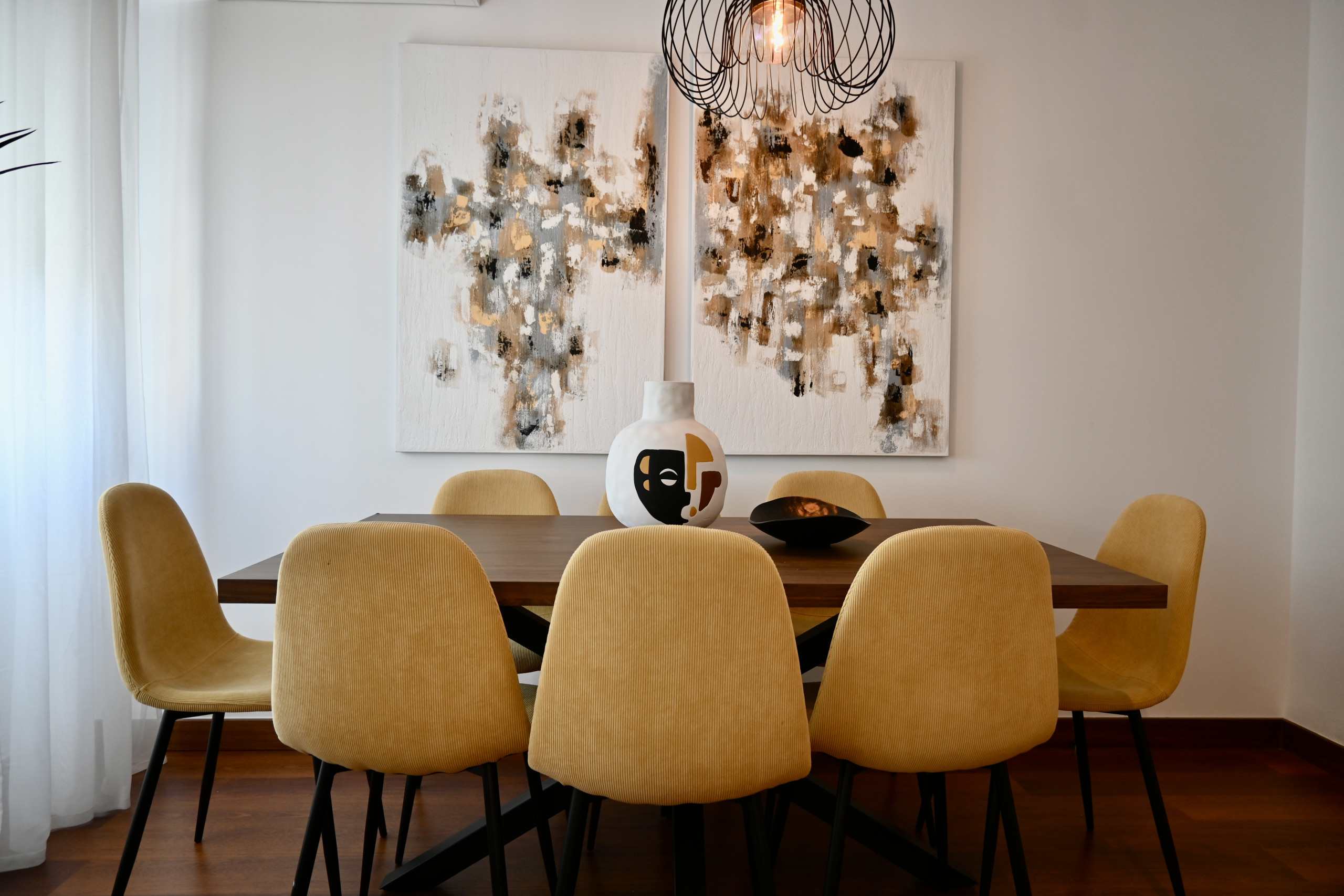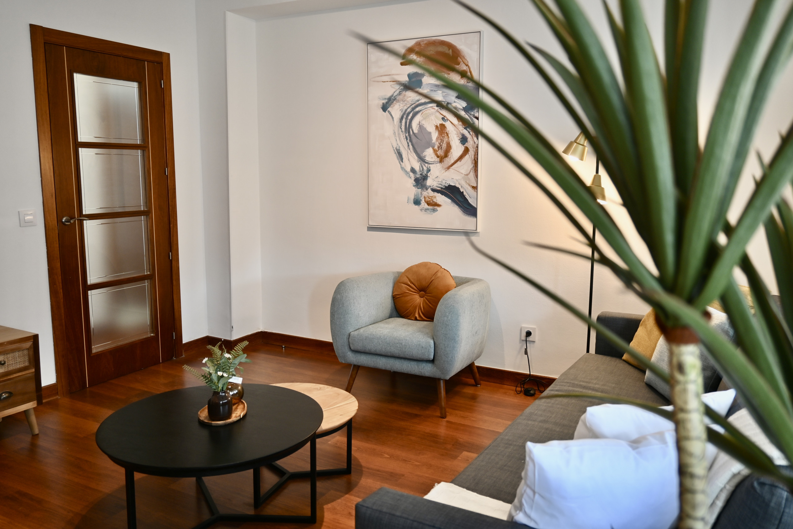 Piso de alquiler Temporal. Hermosa vivienda de cuatro dormitorios y dos baños. Este apartamento ha sido diseñado con maestría por interioristas de Espacio Vivo, lo que le confiere un toque de modernidad y elegancia en cada rincón.