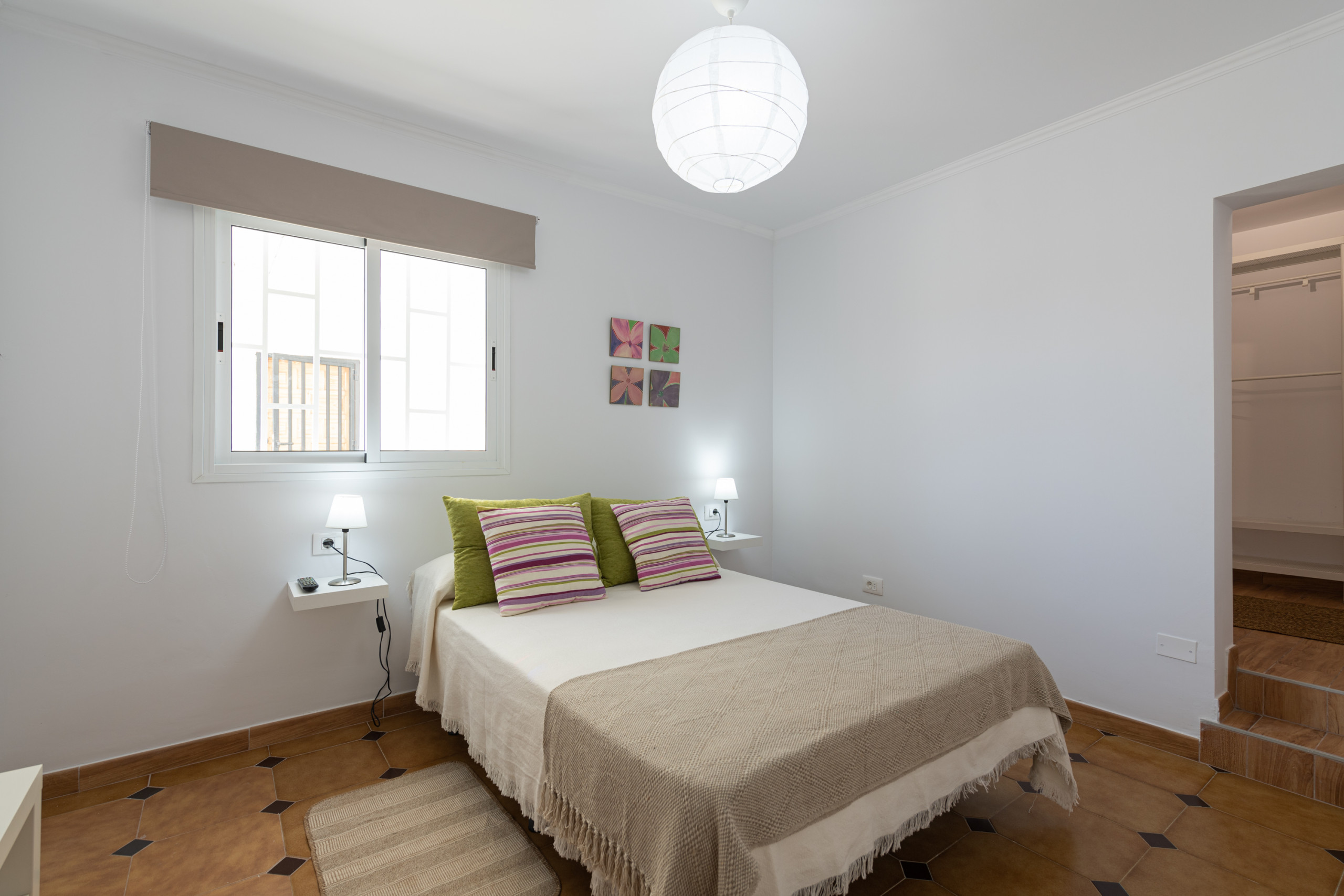 Dos dormitorios: uno con cama de matrimonio, amplio vestidor y pequeño tocador, y un segundo dormitorio con cama individual.