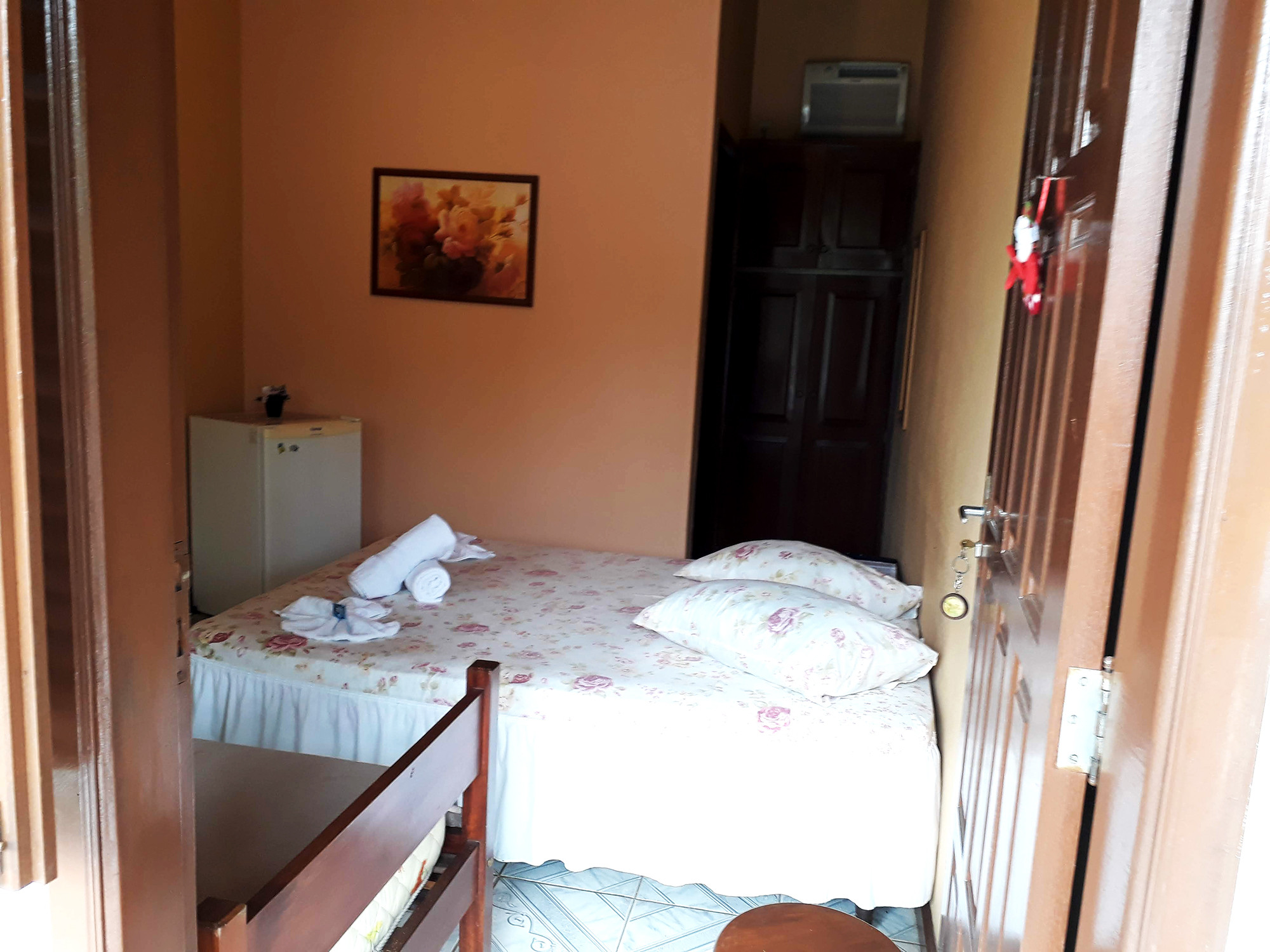 Para você ter descanso e conforto, a suíte dispõe de cama de casal e uma cama de solteiro. Além de TV parabólica com canais abertos, piso frio, ar-condicionado, ventilador de teto e frigobar. A roupa de cama e as toalhas são fornecidas.