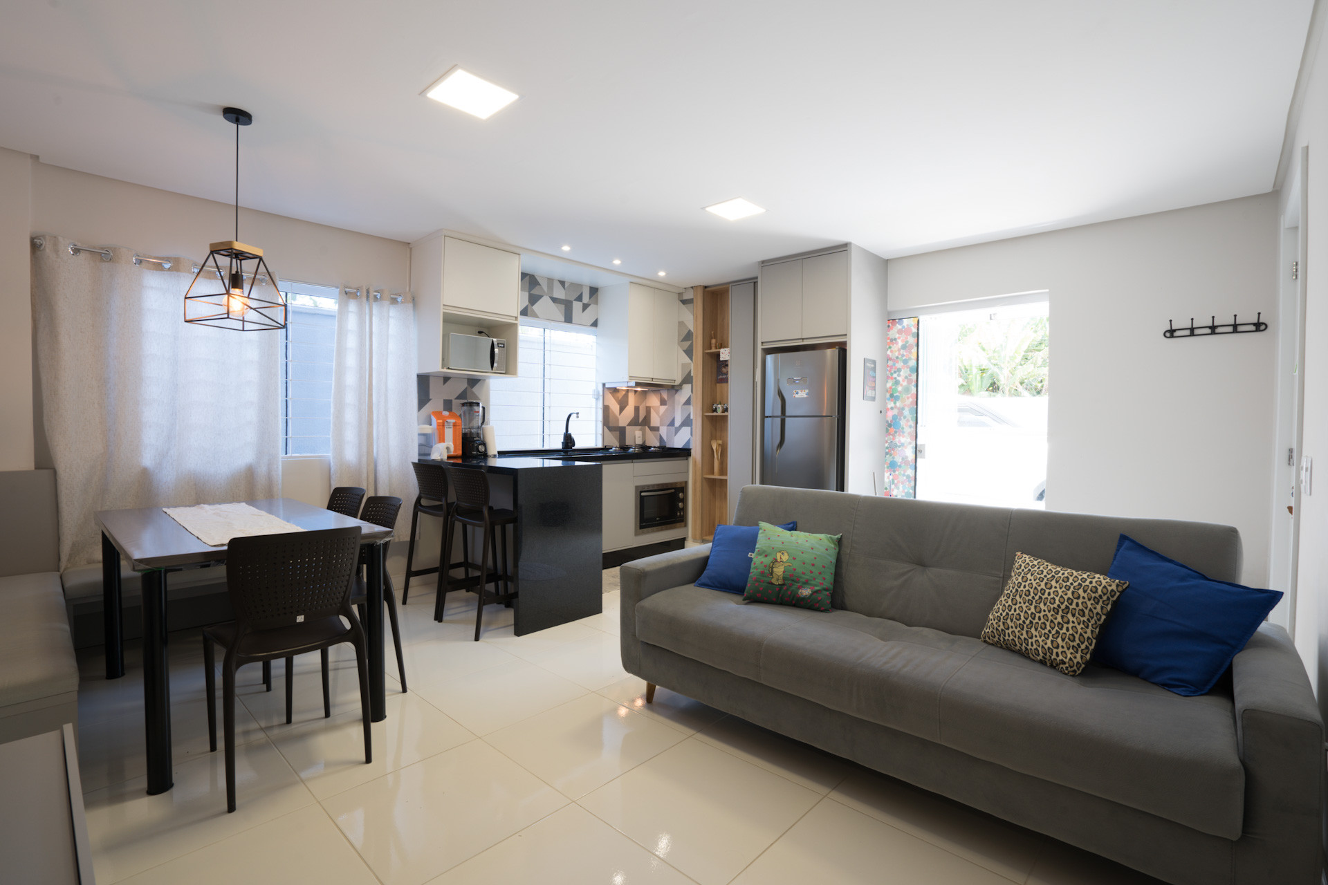 A sua viagem a Santa Catarina ficará completa ao se hospedar neste acolhedor apartamento localizado no térreo de um condomínio a 1 minuto de caminhada da Praia do Cascalho, a 2 minutos a pé da Praia Grande e a 3,7 km (8 min de carro) do Beto Carrero World. O imóvel é novo e dispõe de varanda com churrasqueira privativa e 2 quartos com decoração moderna e com cores neutras, sendo o lugar ideal para acomodar você, seus amigos e familiares. Gostou? Então, garanta já a sua estadia em Penha/SC.