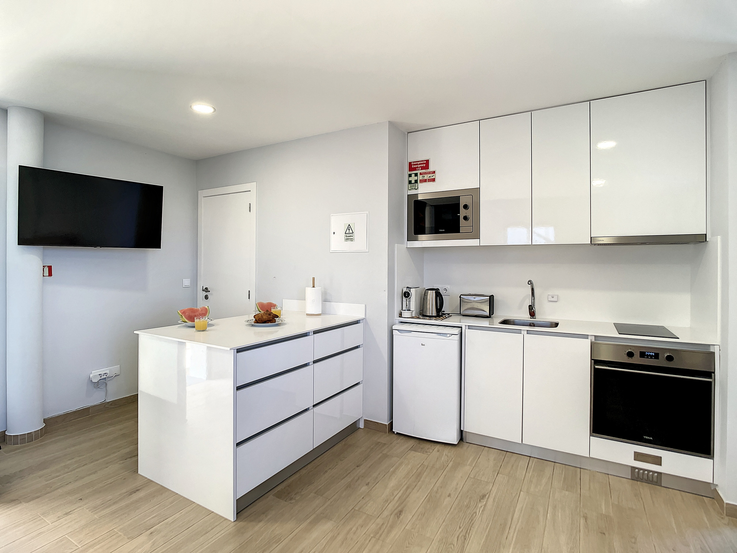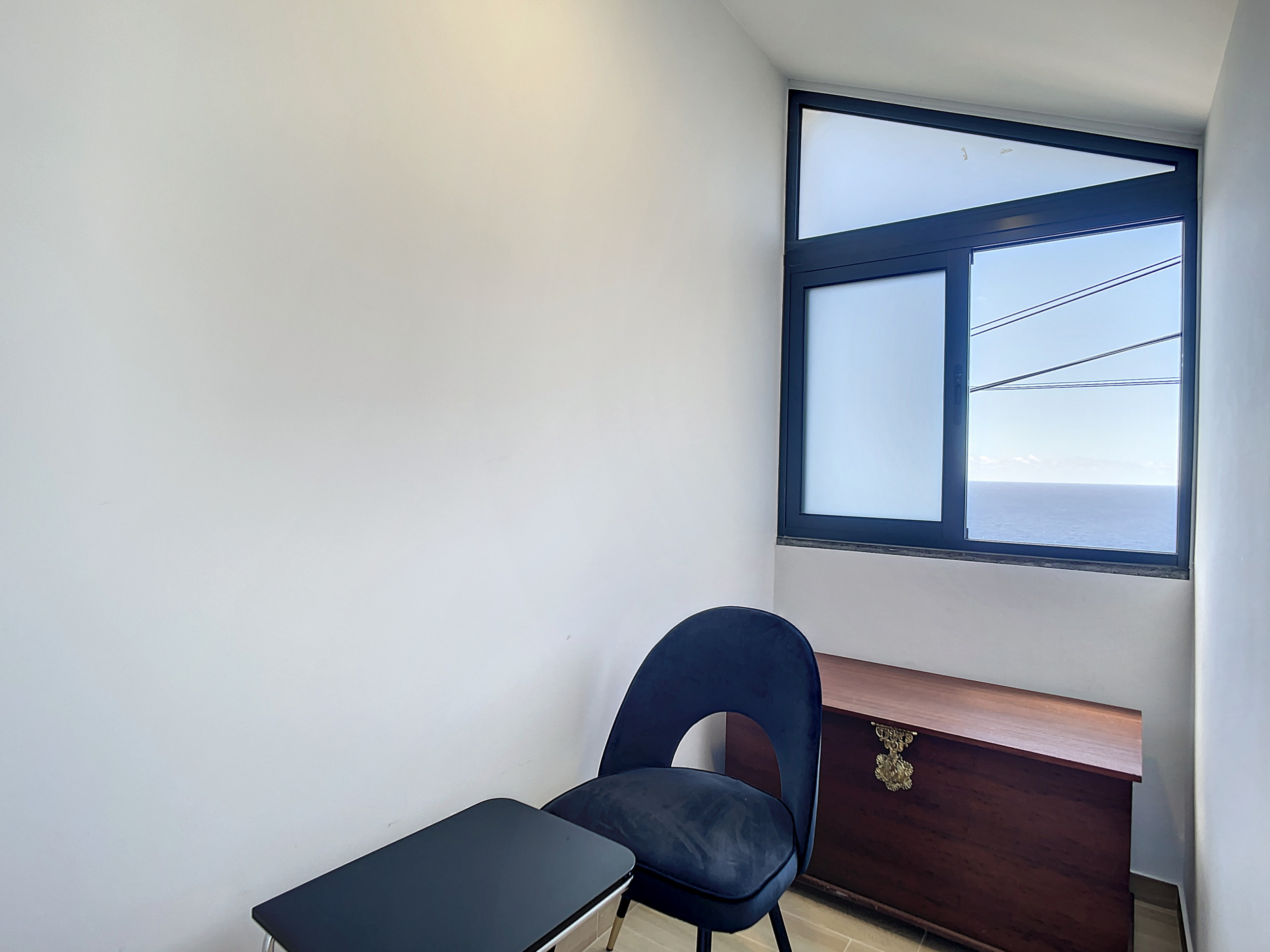 El apartamento cuenta con un dormitorio tranquilo con una cama queen-size y un espacio de estar de planta abierta que ofrece un ambiente sereno para relajarte. El balcón, un refugio iluminado por el sol, es perfecto para descansar y disfrutar del agradable clima de Madeira.