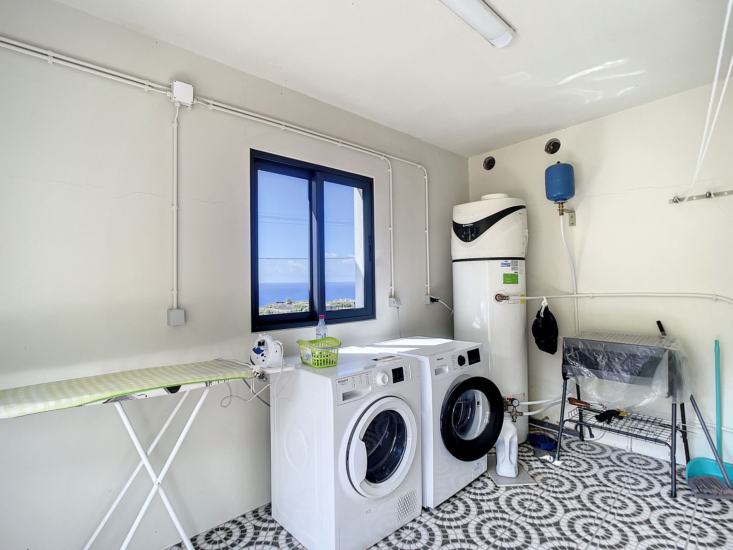 Nuestra cocina, equipada con una variedad de electrodomésticos como nevera, horno y cocina, así como utensilios esenciales, satisface tus necesidades culinarias. Para mayor comodidad, se proporciona una lavadora y un secador de pelo, y compartirás un espacio al aire libre y una lavandería con el apartamento contiguo.
