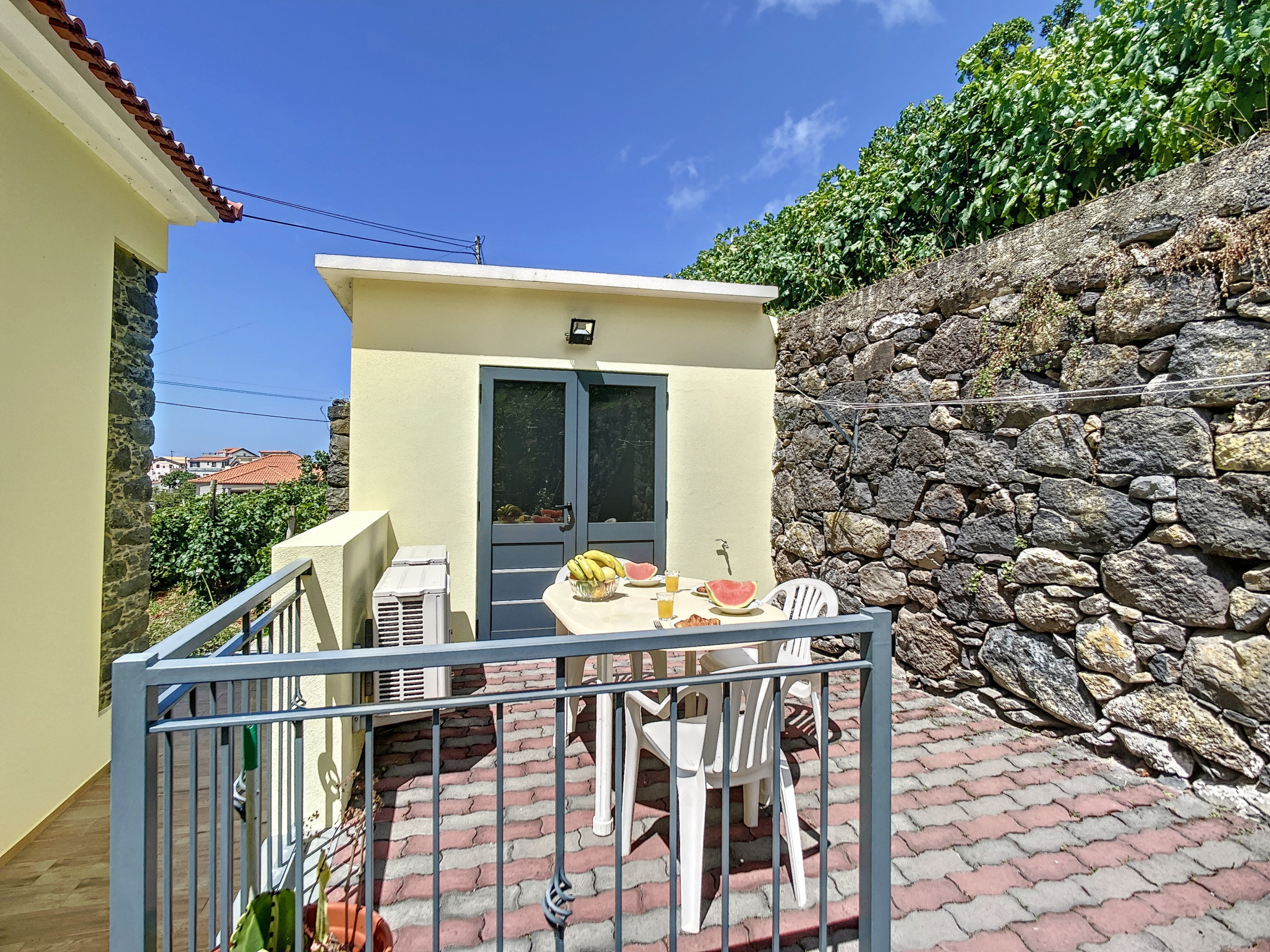 Ubicado a solo 5 minutos en coche del supermercado más cercano y del encantador pueblo de São Vicente, los servicios locales están al alcance de la mano. Un corto trayecto en coche te llevará a la tranquila Playa de Arena de Seixal y a las impresionantes Piscinas Naturales de Porto Moniz. El estacionamiento es sencillo, con amplias plazas de aparcamiento gratuitas disponibles en la calle.