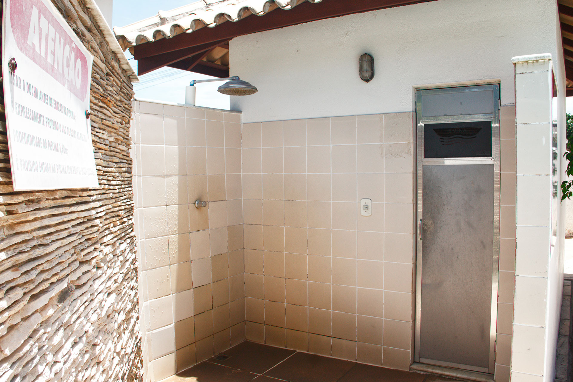 - Banheiro social com chuveiro elétrico e box