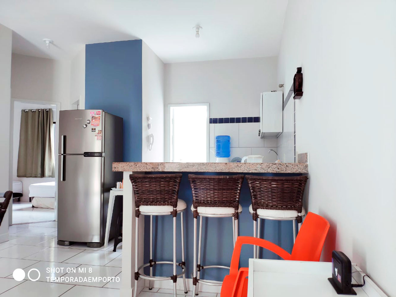 - Cozinha americana equipada com tudo que você mais precisa para suas refeições, incluindo fogão, geladeira, liquidificador e torradeira