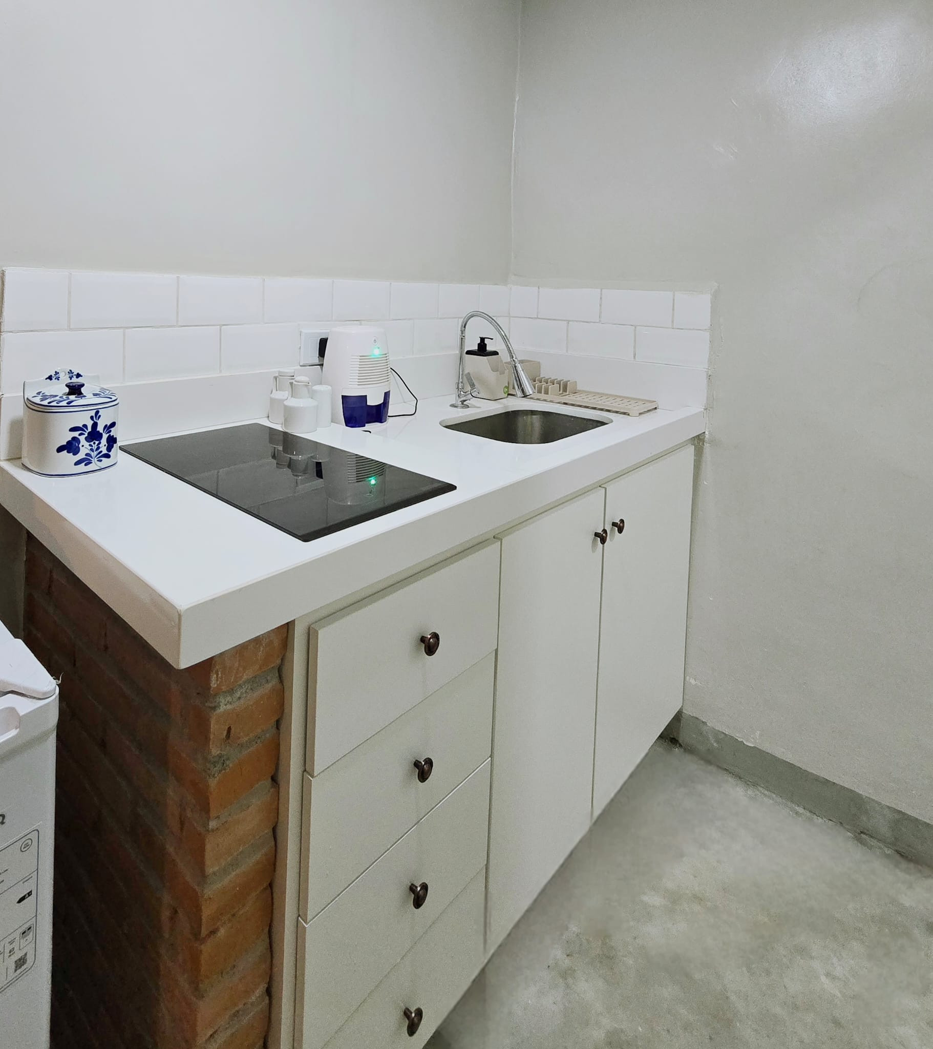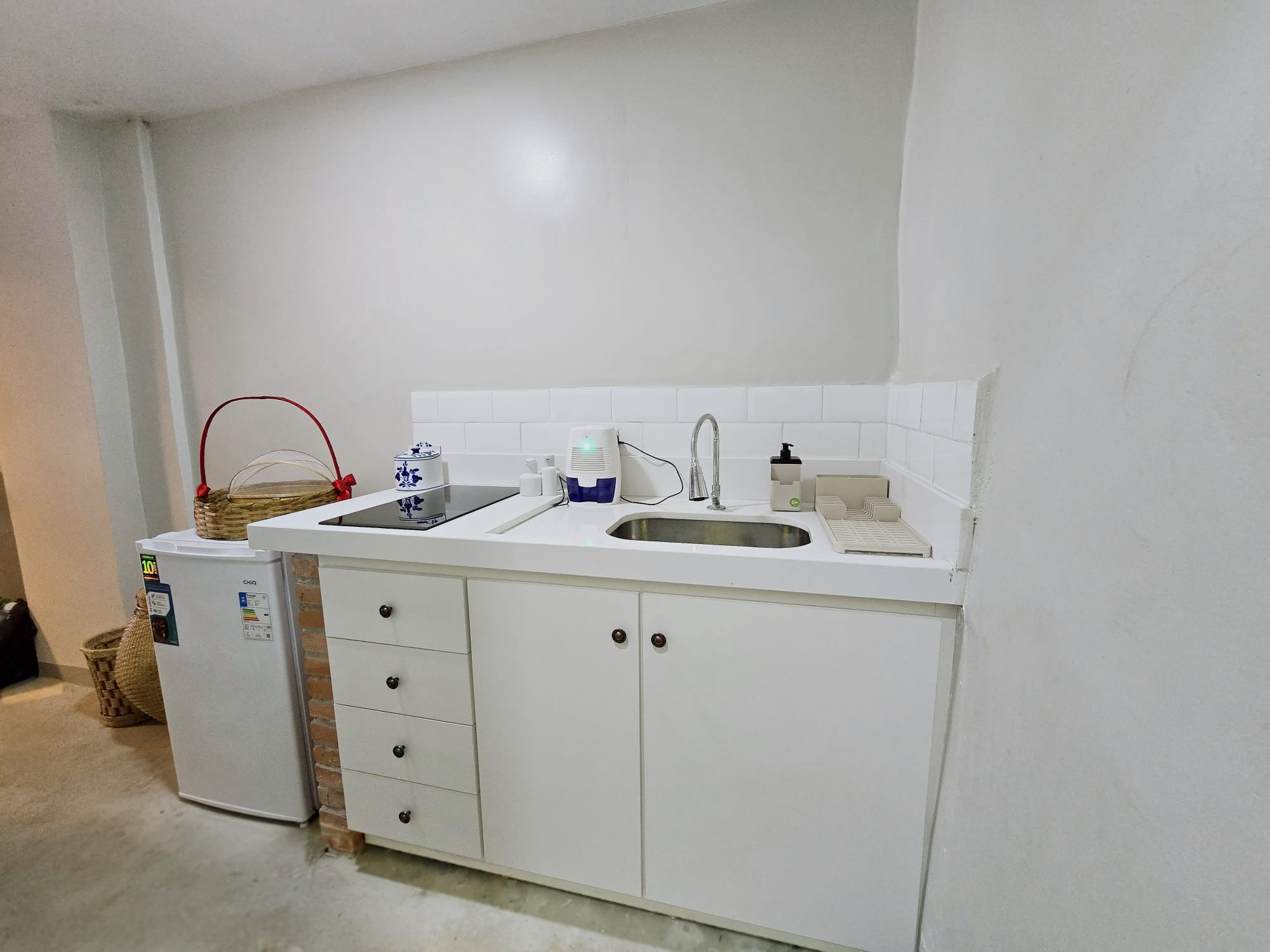 - Cocina equipada con minibar, cocina de 2 fuegos, microondas, cafetera, diversos utensilios completos y mesa para comidas. Las copas de cristal no son para uso