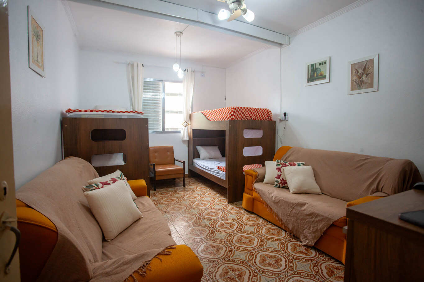 - En el dormitorio hay 2 literas, armario, protector de colchón y ventilador de techo