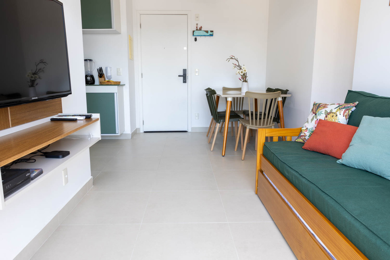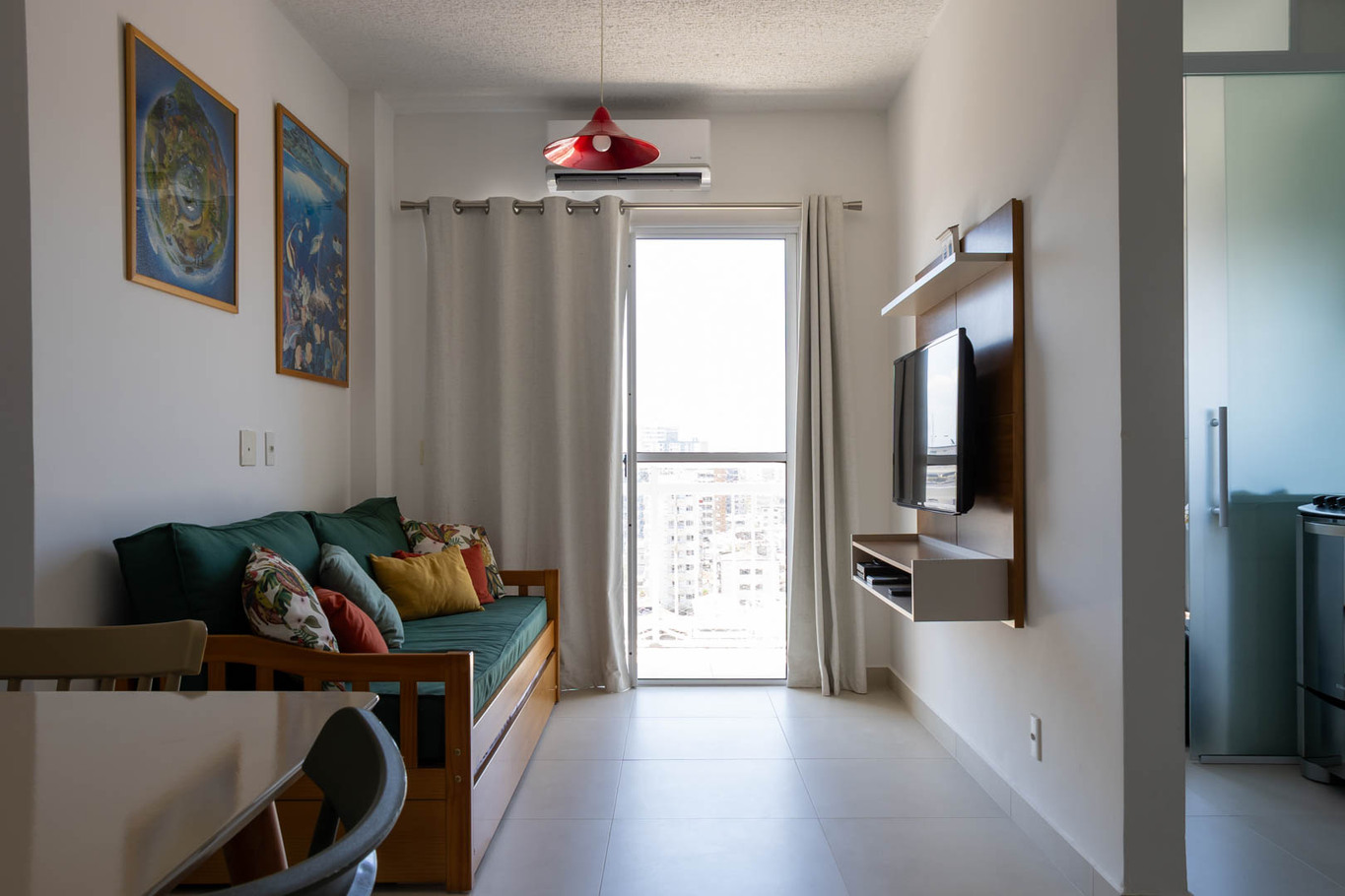 - La sala está equipada con silla y sofá-cama