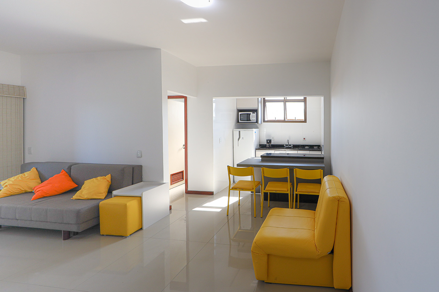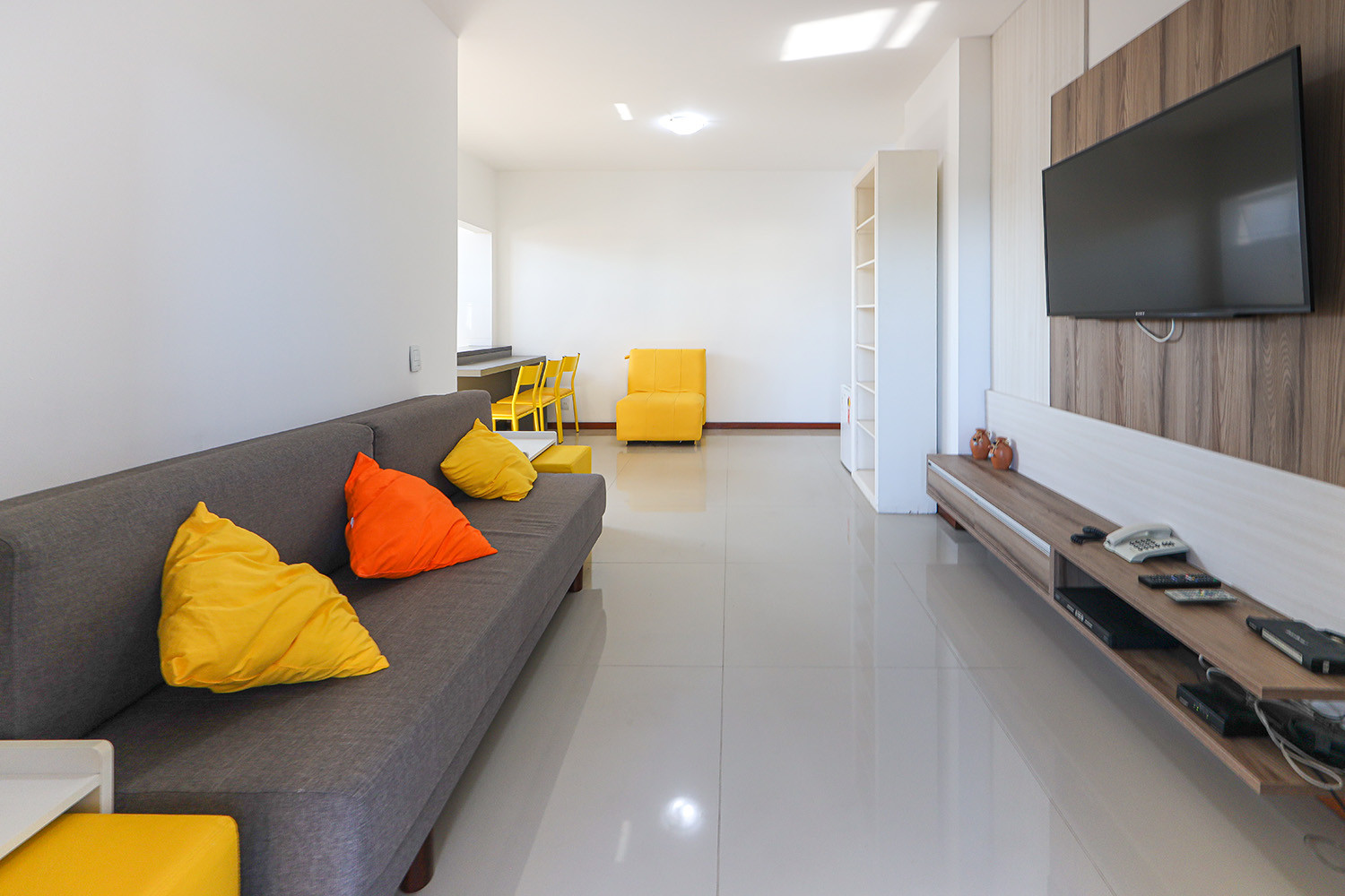 A sala está equipada com cadeira, poltrona (que pode ser convertida em cama), sofá-cama, e Smart TV com canais a cabo.