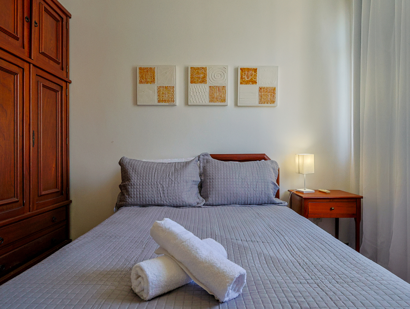 - La habitación está equipada con armario, protector de colchón y ventilador de techo