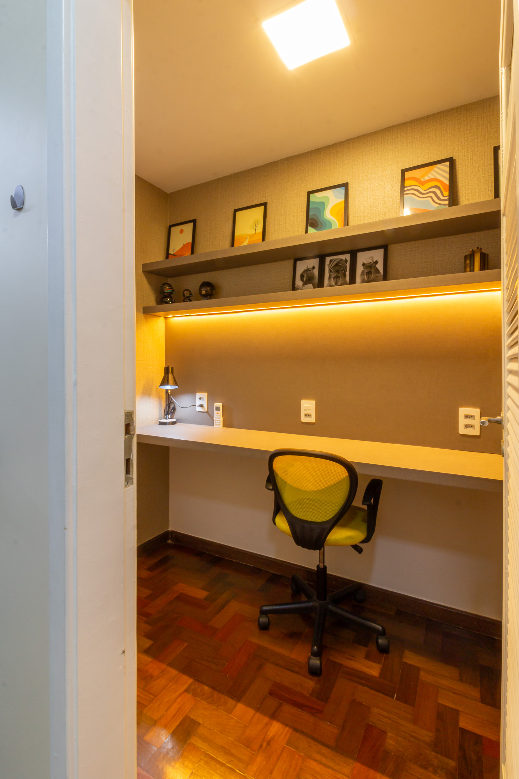 💻 Espacio de oficina en casa con aire acondicionado split.