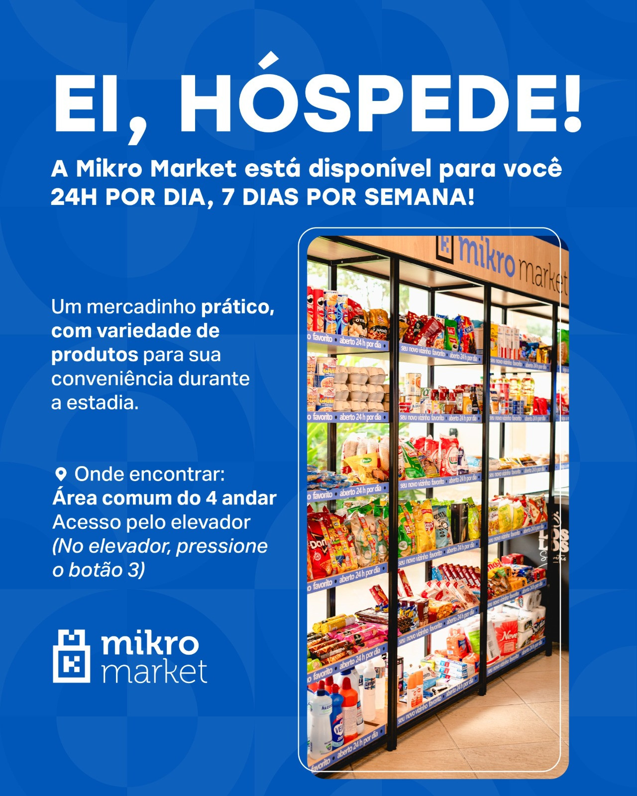 Además, el edificio cuenta con un minimercado abierto las 24 horas, disponible todos los días de la semana, ofreciendo comodidad y variedad de productos durante su estancia. El minimercado está ubicado en el área común de la 4ª planta, con acceso por el ascensor (presionar el botón 3).
